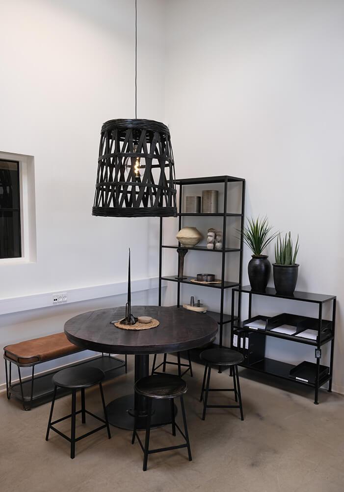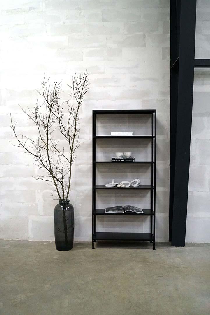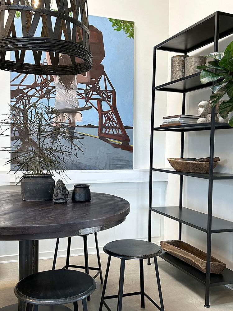 Looking for a tall, raw, and spacious rack? Then this black iron rack from our Seattle series might be just what you need. Made of black-lacquered iron, it has a simple, industrial look that fits perfectly into both modern and masculine interiors. With six shelves and approximately 35 cm between them, you’ll have plenty of space for decoration, storage, and organization – whether it’s for a shop, kitchen, or office. Find more sizes and colors by searching for “Seattle” in the shop.
