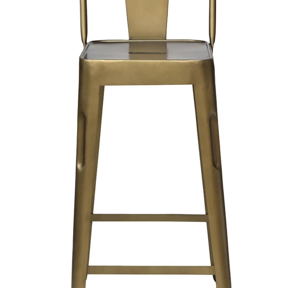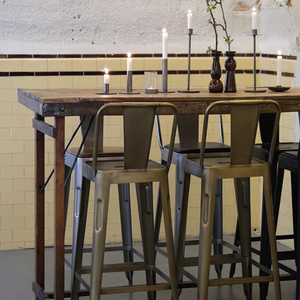 This barstool in a stunning antique brass color brings a unique touch to any interior. Its raw and industrial look makes it a favorite for both private and professional settings. For added comfort, you can upgrade it with one of our seat cushions – choose between black (M1401) or brown (M1404). The cushions are easily attached using the pre-drilled screw holes in the seat. A classic stool with a twist of vintage charm, perfect for everything from your home bar to a stylish café.