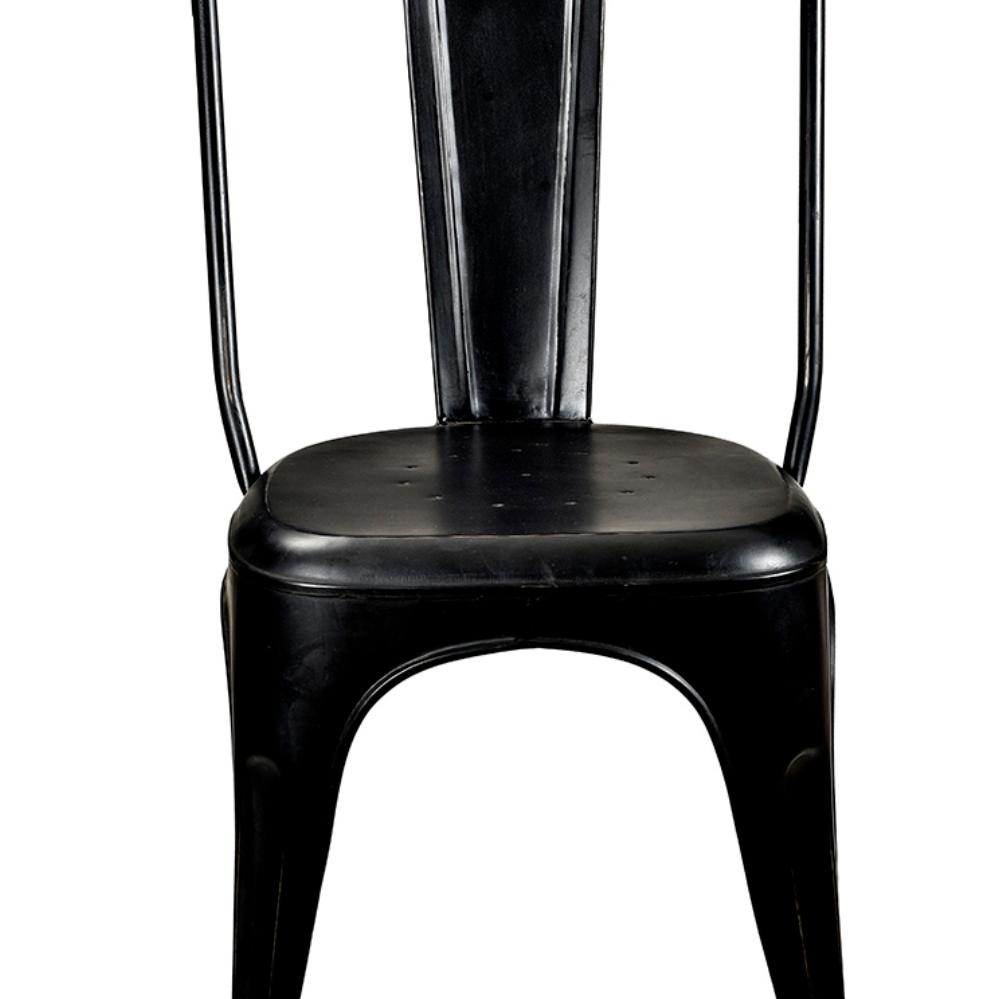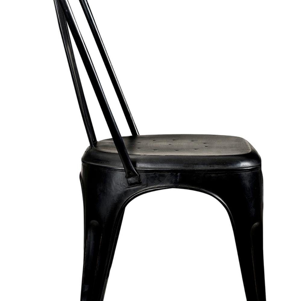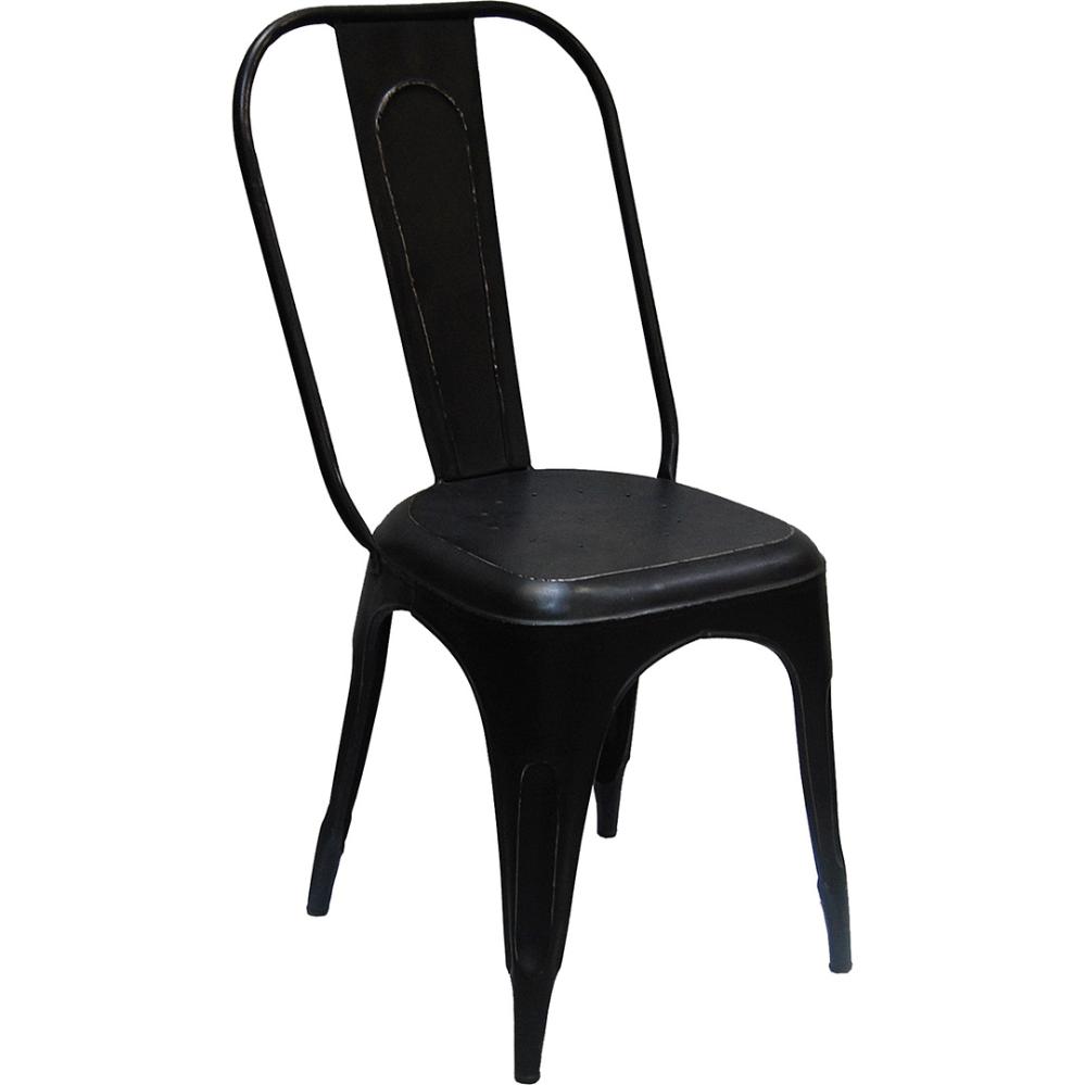 Super cool Living dining chair in antique black iron with high backrest. Black is a safe color choice, as it can go with almost anything in your home. It has patina that makes it even more beautiful. The chair is without leather. If you want to add more color to the chair, we have a cushion in a cognac color (M1405). Otherwise, we have the black cushion (M1402) that matches the chair itself.