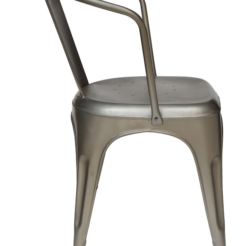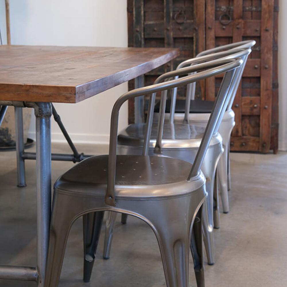 The Living dining chair in shiny metal features a minimalist and industrial design that fits perfectly into both modern and rustic settings. Made from sturdy iron, the chair is stackable, making it practical and space-saving. For added comfort, cushions can be purchased to provide a softer seating experience. The dining chair is ideal for both private homes and professional spaces like cafés and restaurants, where functionality and style go hand in hand.
