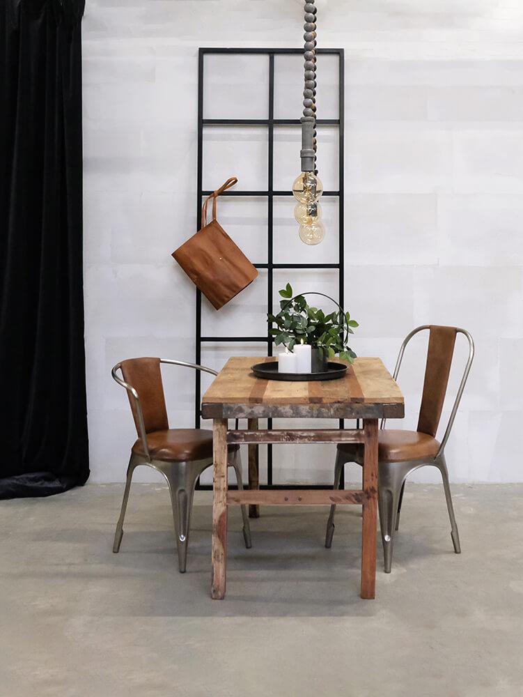 Very cool upholstered Living dining chair in shiny metal with armrests, combining an industrial look with classic comfort. The chair features brown antique leather on both the seat and backrest, ensuring a comfortable sitting experience. With its unique design and gleaming metal frame, this chair will enhance any home or office interior, adding plenty of character. Perfect for cafés, hotels, and private homes, it creates a striking and distinctive look. With this chair, you’ll undoubtedly stand out and add a raw yet stylish element to the room. A chair that is both practical and decorative.