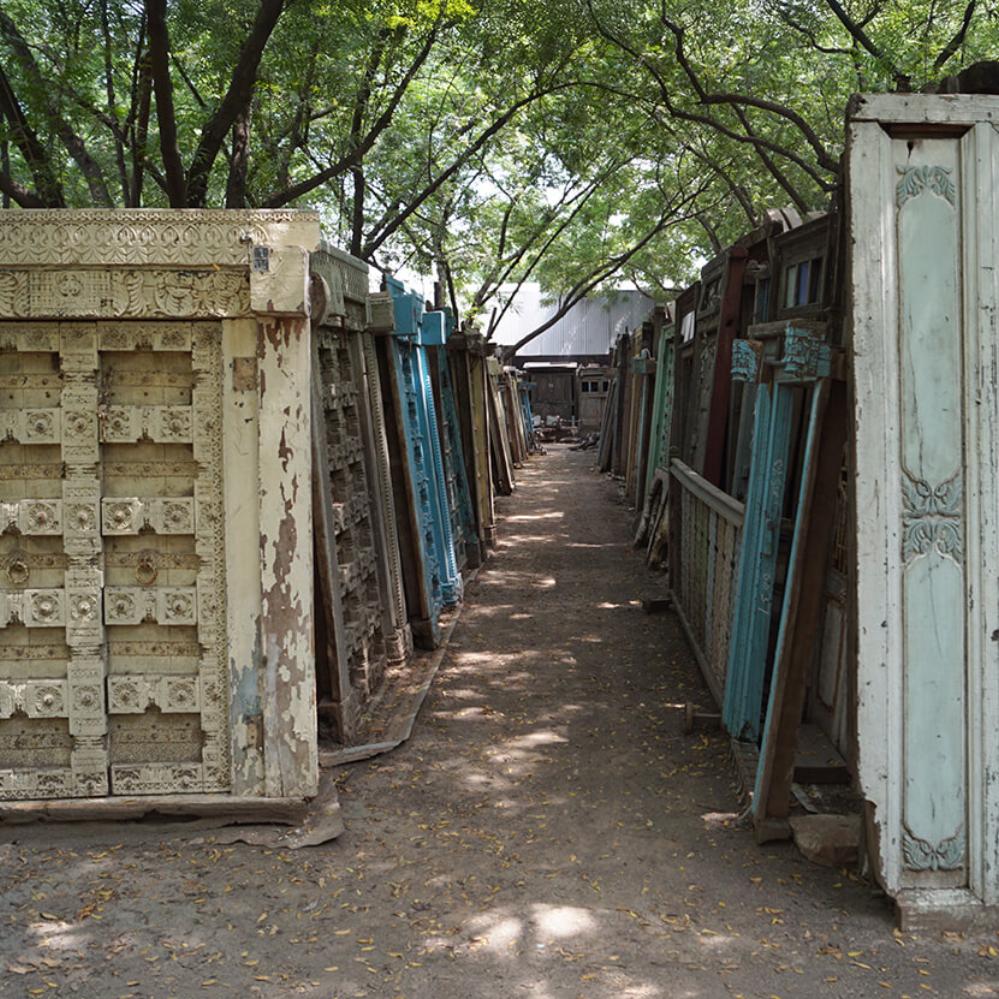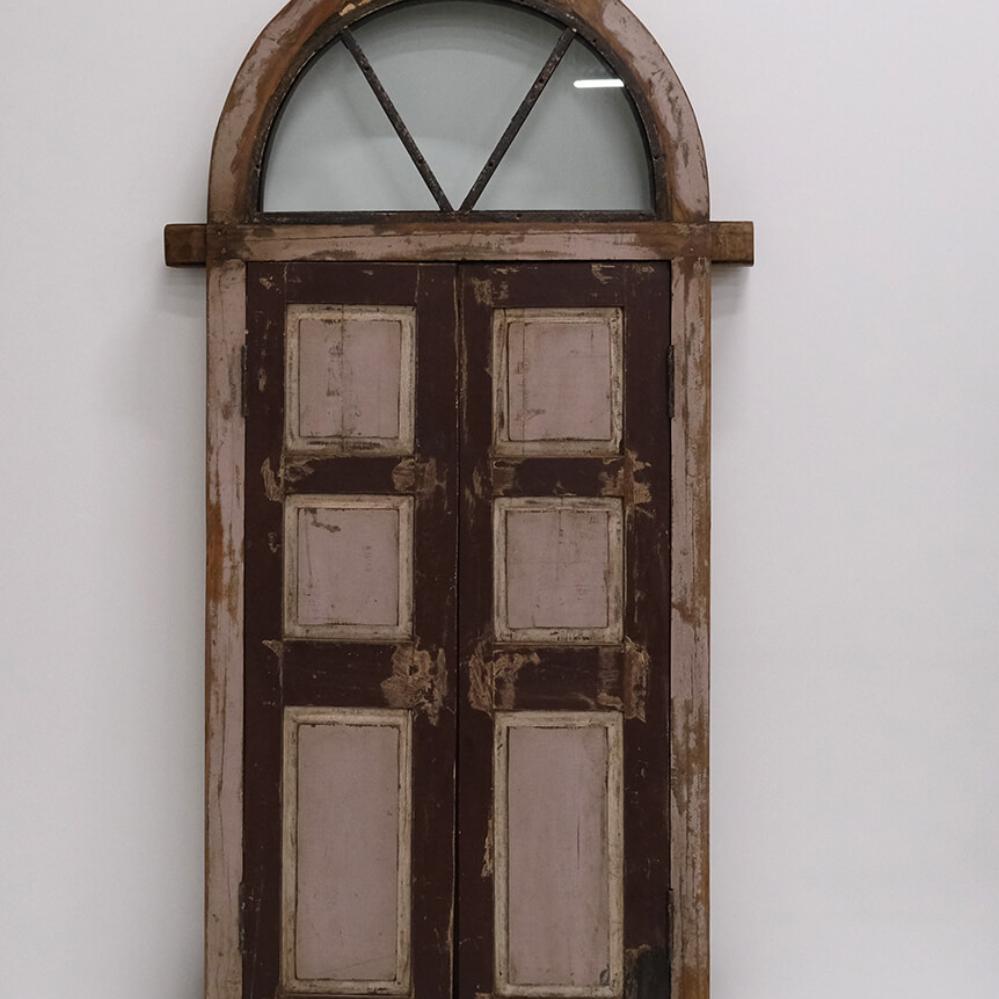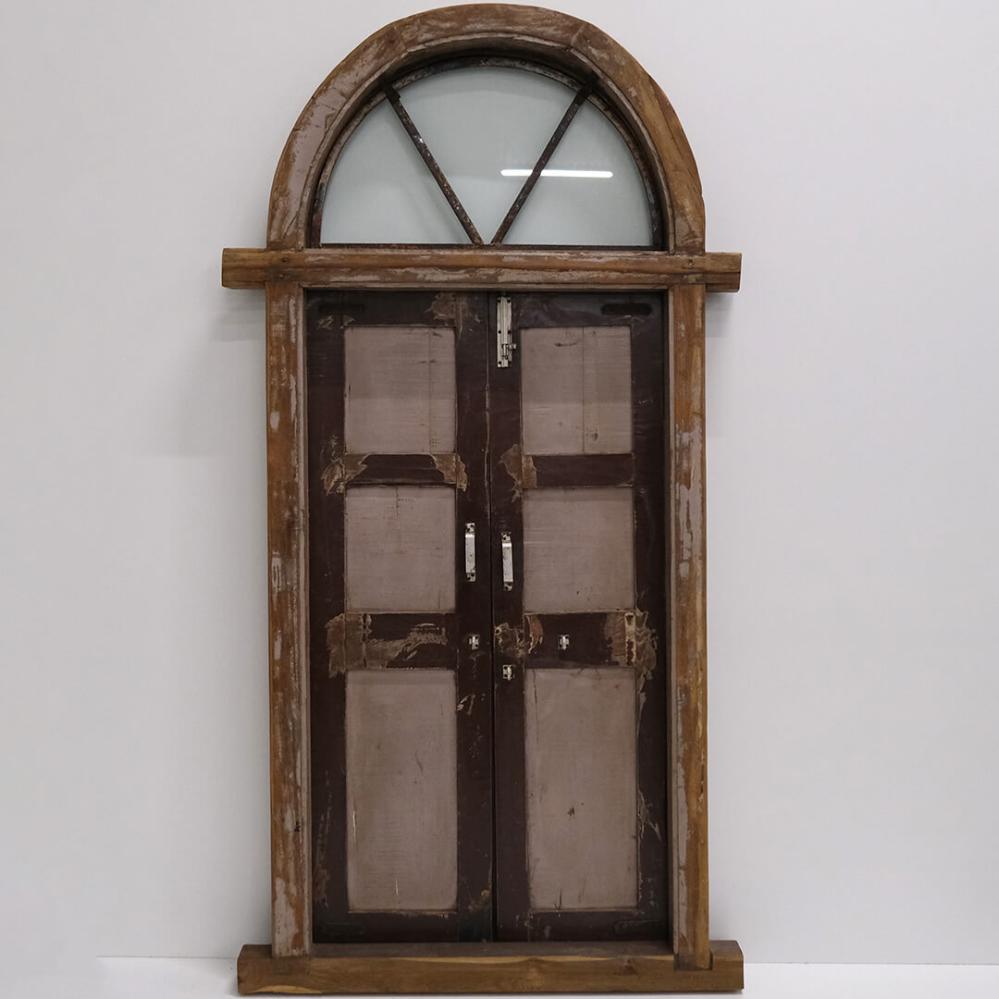 Original and beautiful old wooden door from India with nice arch. The door has glass in the three fields in the arch and has the most beautiful patina. After many years with an Indian family, the door is now here and ready for a new adventure with you in your shop, restaurant, or in your private home, where it will definitely steal some attention.