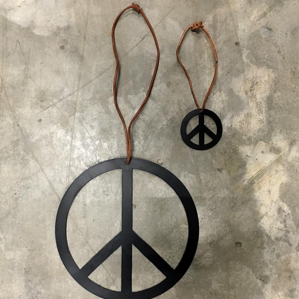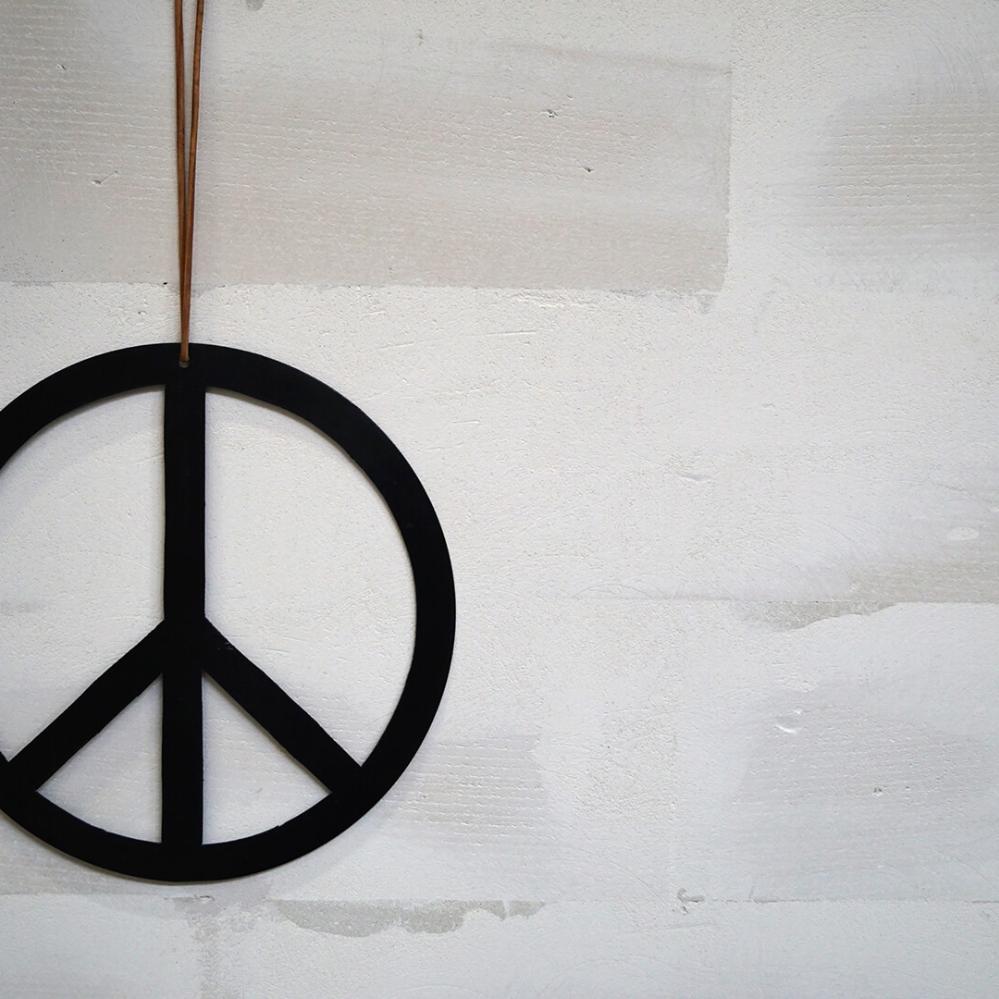 A statement piece for anyone wanting to add a raw and iconic element to their interior. This large peace sign in iron is impossible to overlook, a classic symbol of peace, love, and community, here crafted in a simple industrial design with a natural leather cord for hanging. Perfect above a door, in the hallway, or as an eye-catching wall decoration in the living room or a café.