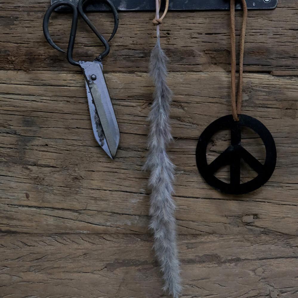 A small symbol with great meaning. This iron peace sign with leather cord is a simple yet powerful decoration that brings calm and good energy into the room. The raw iron finish combined with the soft leather cord creates a cool, relaxed look that fits perfectly into both modern and rustic settings. Hang it on a hook, a handle, or on the wall, and let it serve as a reminder of balance and peace in everyday life.