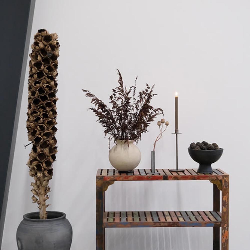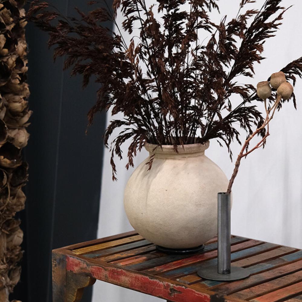 With its simple shape and warm, natural tone, the Dali clay pot brings a touch of Mediterranean atmosphere into your interior. It stands on an iron ring, creating a beautiful contrast to the raw clay. Combine several sizes for a harmonious and lively expression. The pot is not waterproof.