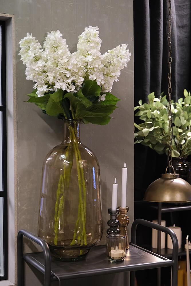 This tall floor vase in recycled glass combines simplicity and elegance in a beautiful way. With its height of 60 cm, it’s ideal for showcasing natural materials from lush branches to decorative dried flowers. The vase’s slender shape and smoky tone make it easy to pair with both raw and soft materials, and it looks stunning on its own or grouped with other vases. As it is made from recycled glass, small bubbles and minor irregularities may occur.
