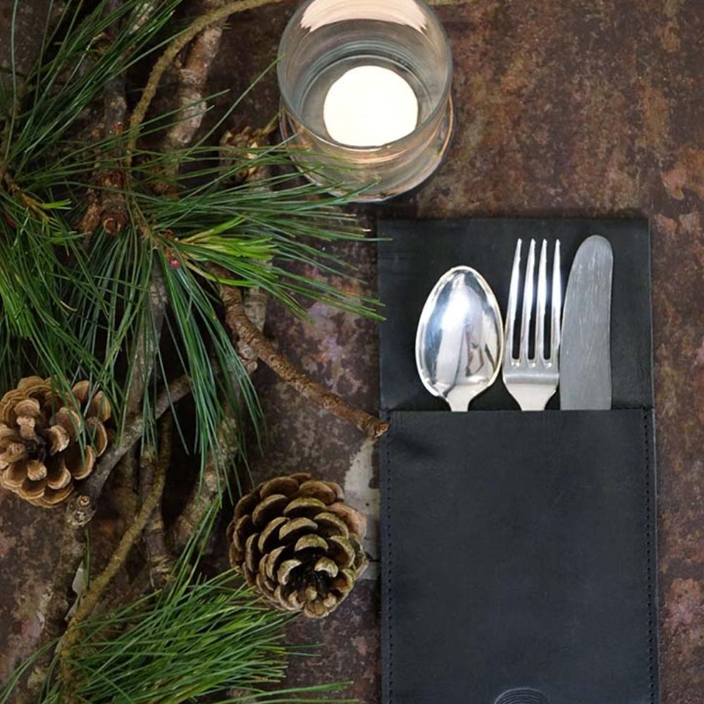 Storm Cutlery bag - black leather