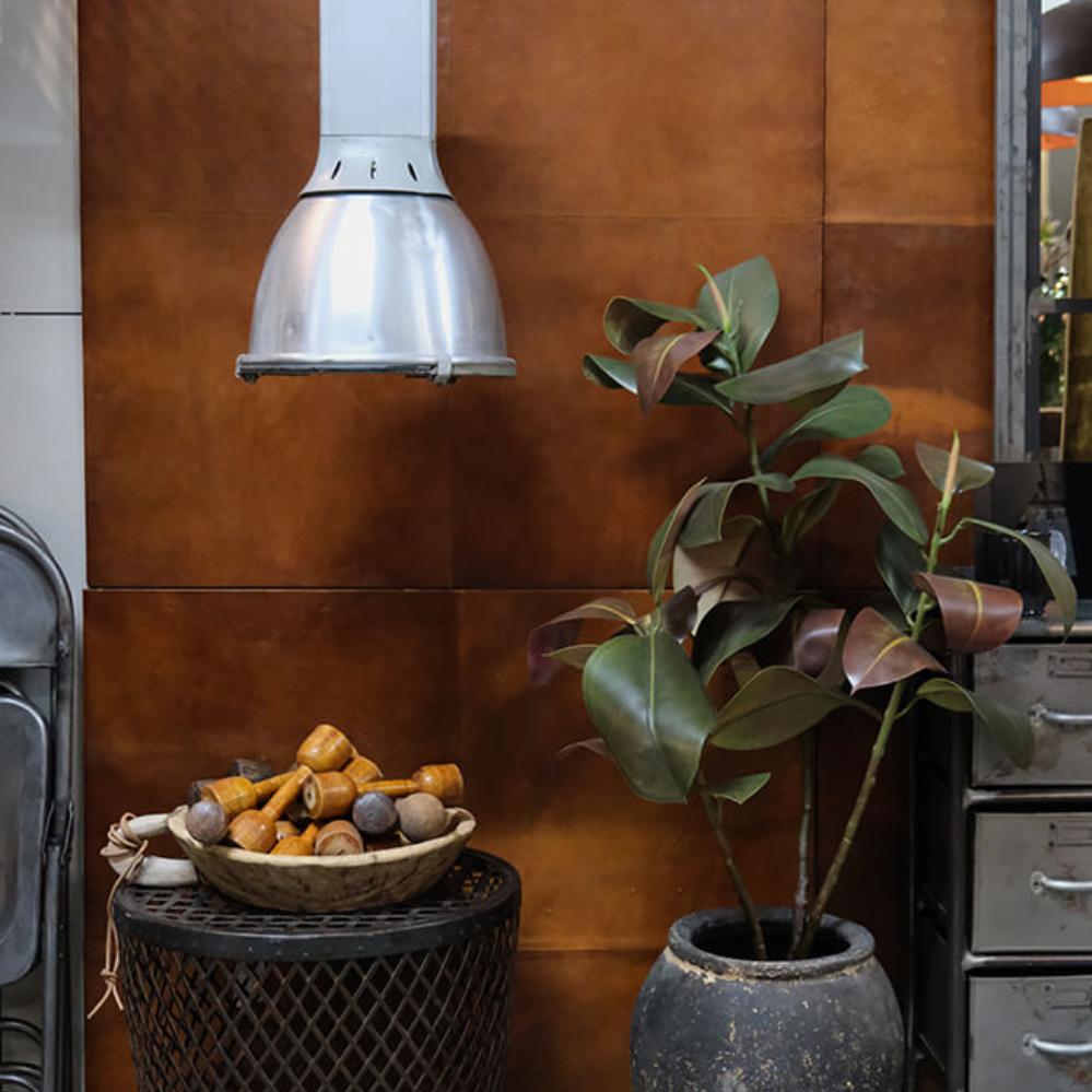 This rustic industrial lamp is a true find for anyone who loves raw, factory-inspired interiors. Made of iron with a bold construction and patinated details, it carries plenty of character. With its sturdy design and wide shade, the lamp provides a focused, powerful light, perfect above the dining table, kitchen island, or in a café in which you want to add an urban, industrial vibe. The heavy chain emphasises the authentic look while ensuring a solid and secure attachment. Use it as a striking standalone piece or combine several to create a fully industrial atmosphere in the room.