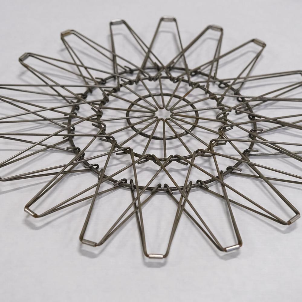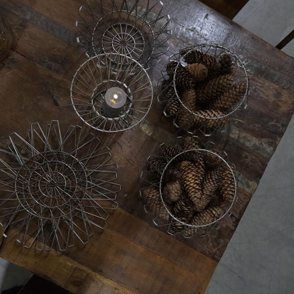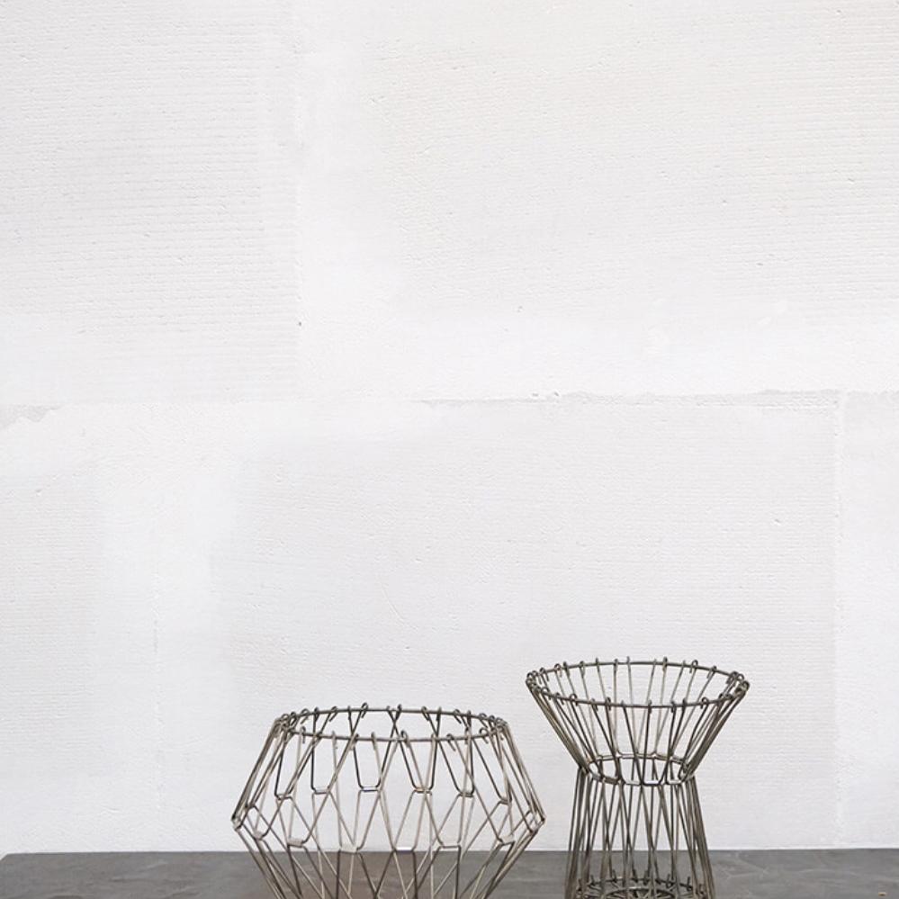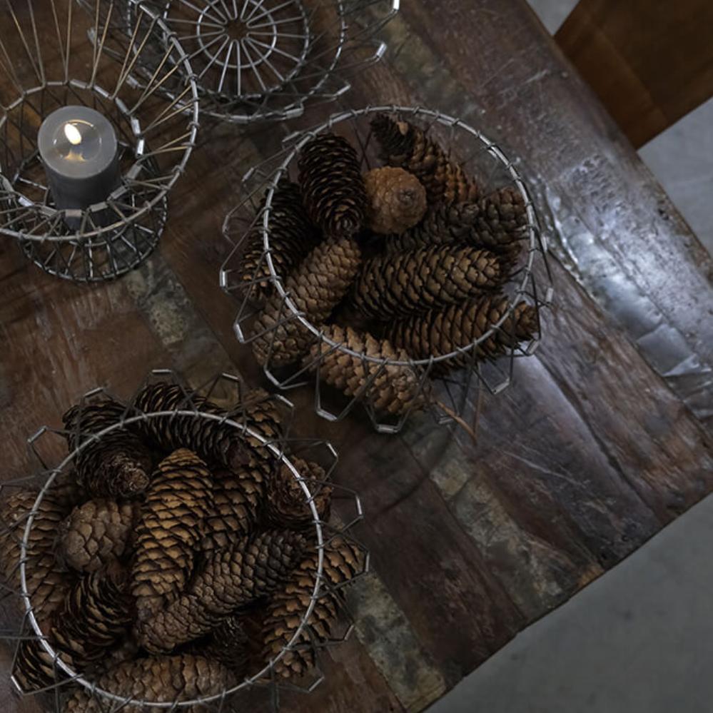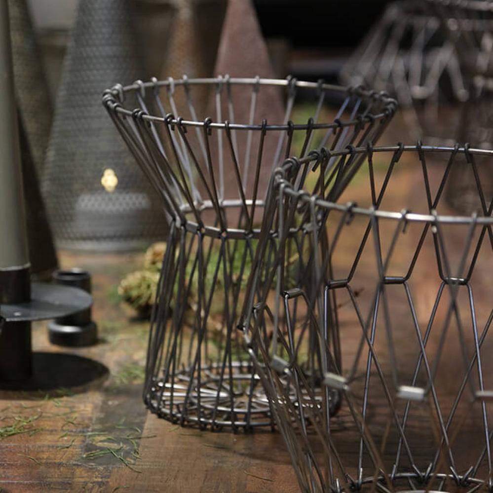 Beautiful wire basket in iron with clear lacquer. The wire basket is made in a simple and multifunctional design, as it can be shaped into different kinds of baskets and pressed completely flat, so it can be hung on a wall, placed on a chest of drawers or on a table or hung from the ceiling. The wire creation is an easy way to create a nice, unique and rustic look in your interior.
