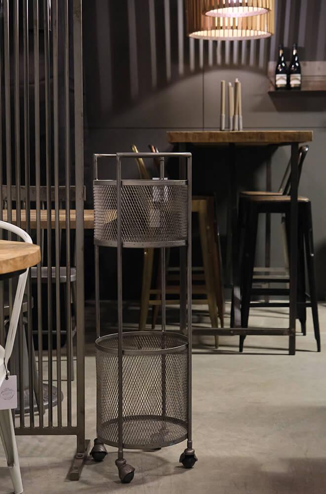Trolley with a cool timeless design. The baskets in perforated iron with 4 wheels give the trolley a raw exclusive look. The trolley can create a nice order and tidiness with the two large practical basket compartments. Only limited by ones imagination how the trolley can be used, it will fit anywhere - in stores, in the café, in the office, in the hallway, in the bathroom, in the living room or where some extra storage space is needed.