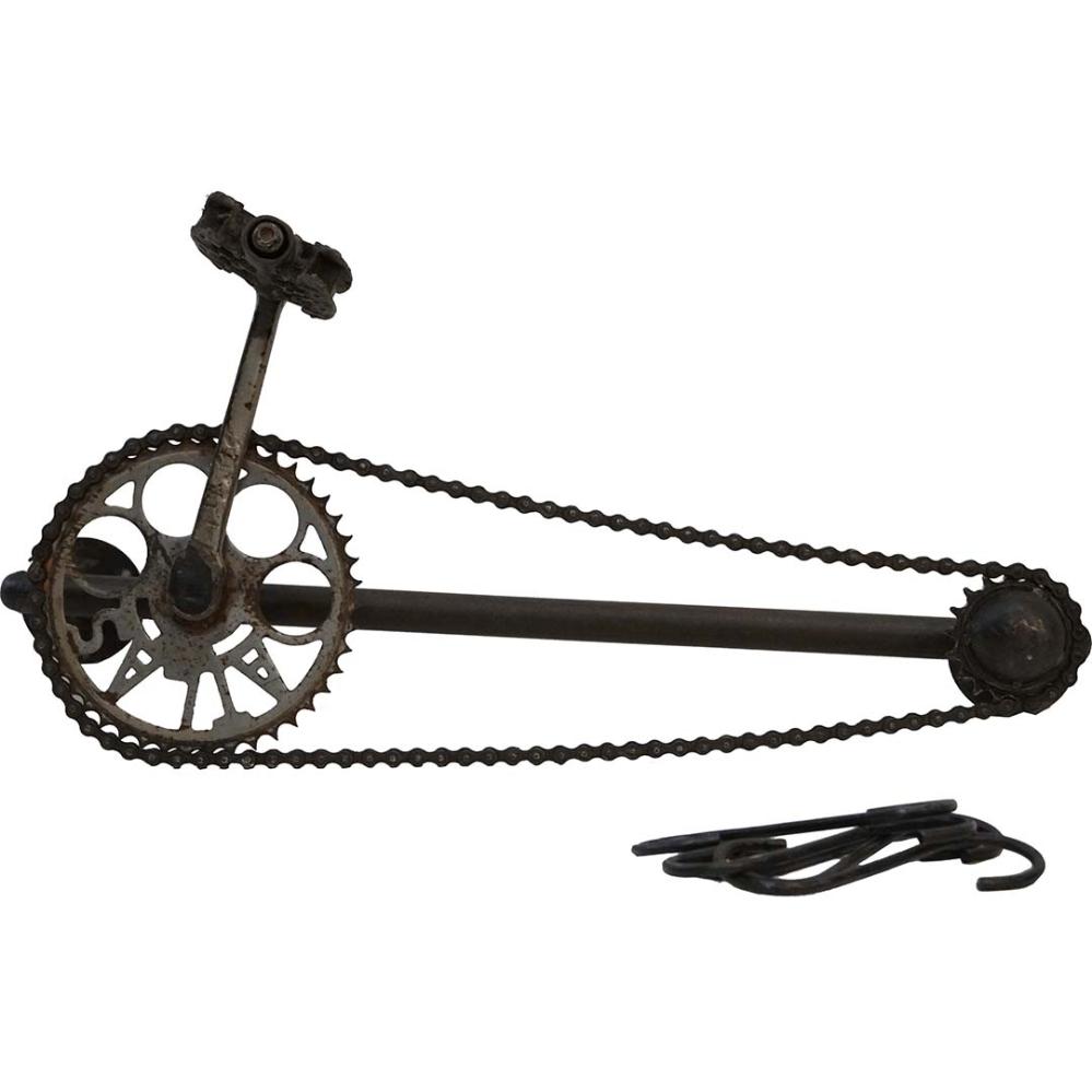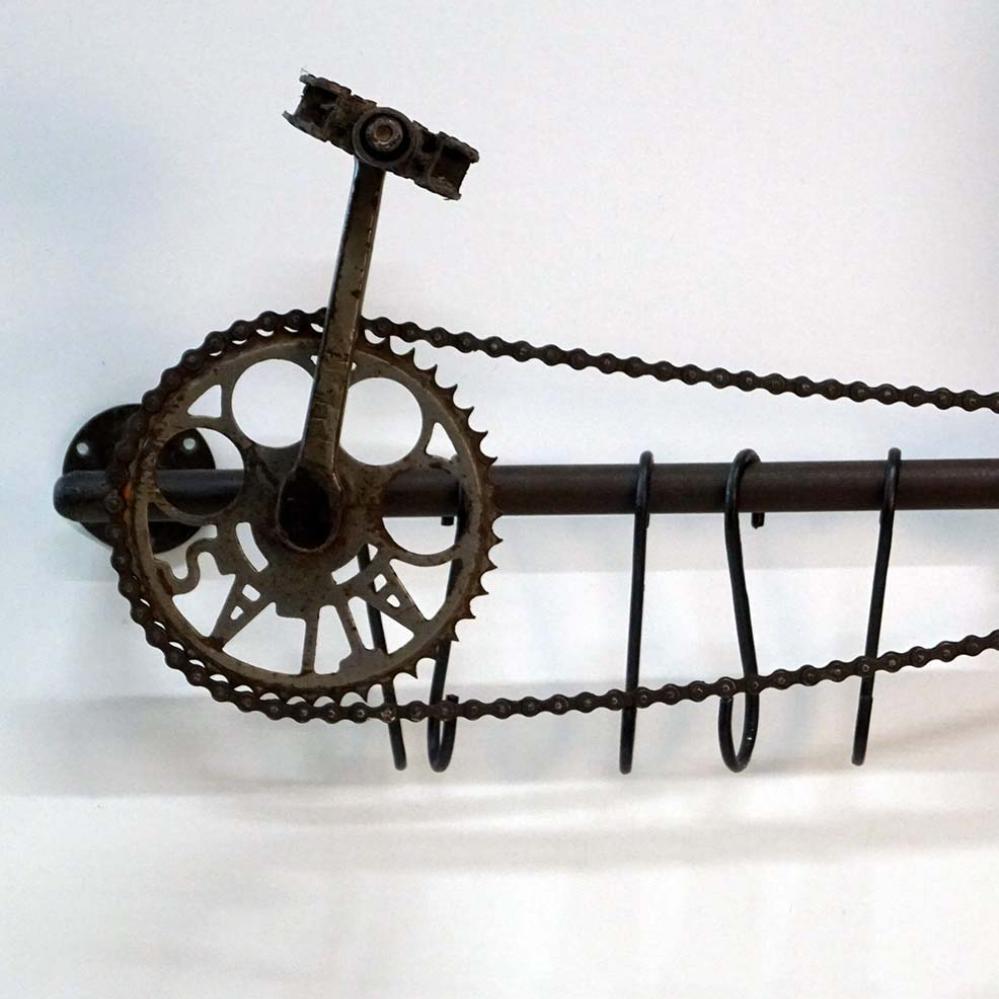 Upcycling - we used the bike chain and pedals from an old bike and added fittings to create a new and unique coat rack including 5 S-hooks. Made from old bike parts, this coat rack will add a rough and rustic look and a fun and different touch to your decor. The coat rack can be hung in many different rooms in both your home and your shop. Hang it in your hallway, bedroom, or in the store's dressing room.