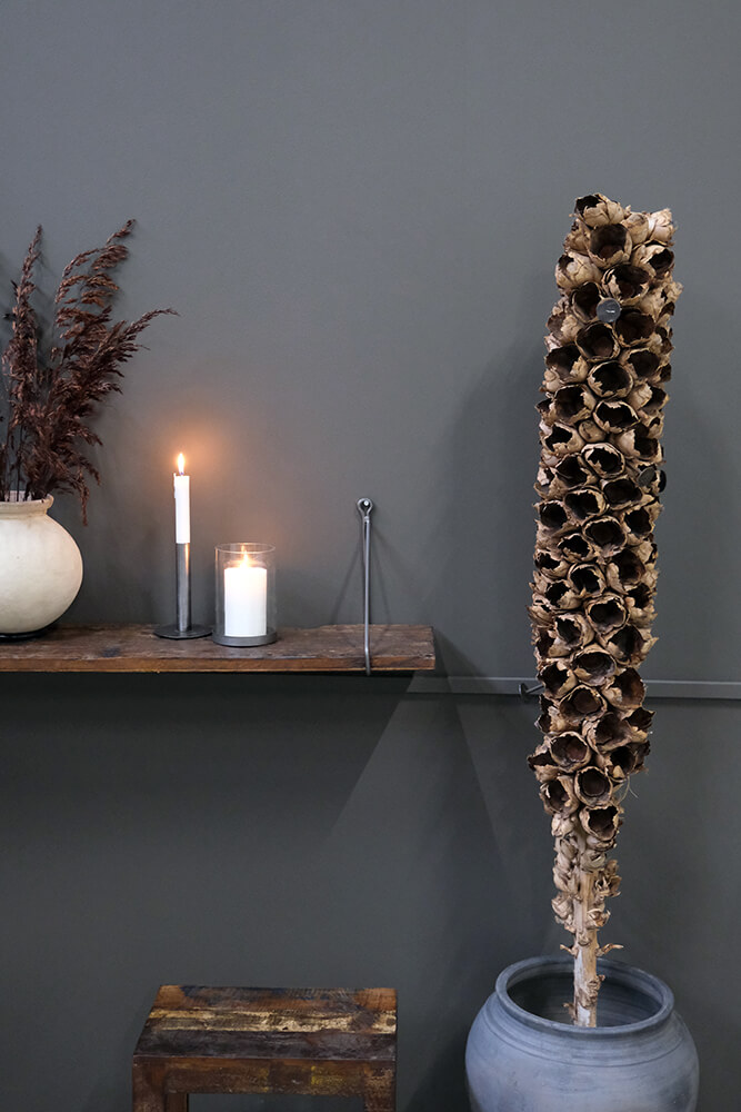 This raw and beautiful shelf is crafted from solid wood, where the natural structure remains visible and gives it a truly unique expression. The shelf hangs from simple iron brackets that both emphasize the industrial look and highlight the authentic character of the wood. It’s a shelf that radiates nature and craftsmanship, perfect for adding warmth and edge to your interior. Use it in the kitchen for spices and small jars, in the living room for plants and personal treasures, or in the shop as a raw display shelf. The rustic wood combined with the simple iron brackets creates a look that is both raw and stylish, making the shelf fit in whether your style is industrial, bohemian, or rustic. The shelf is available in 3 sizes.