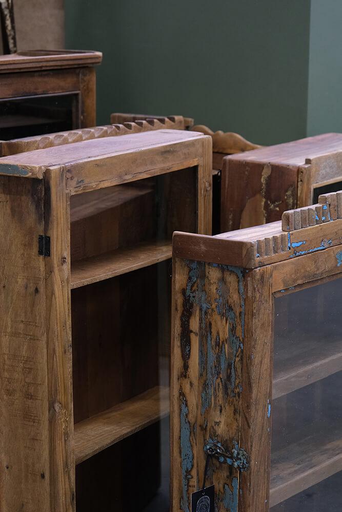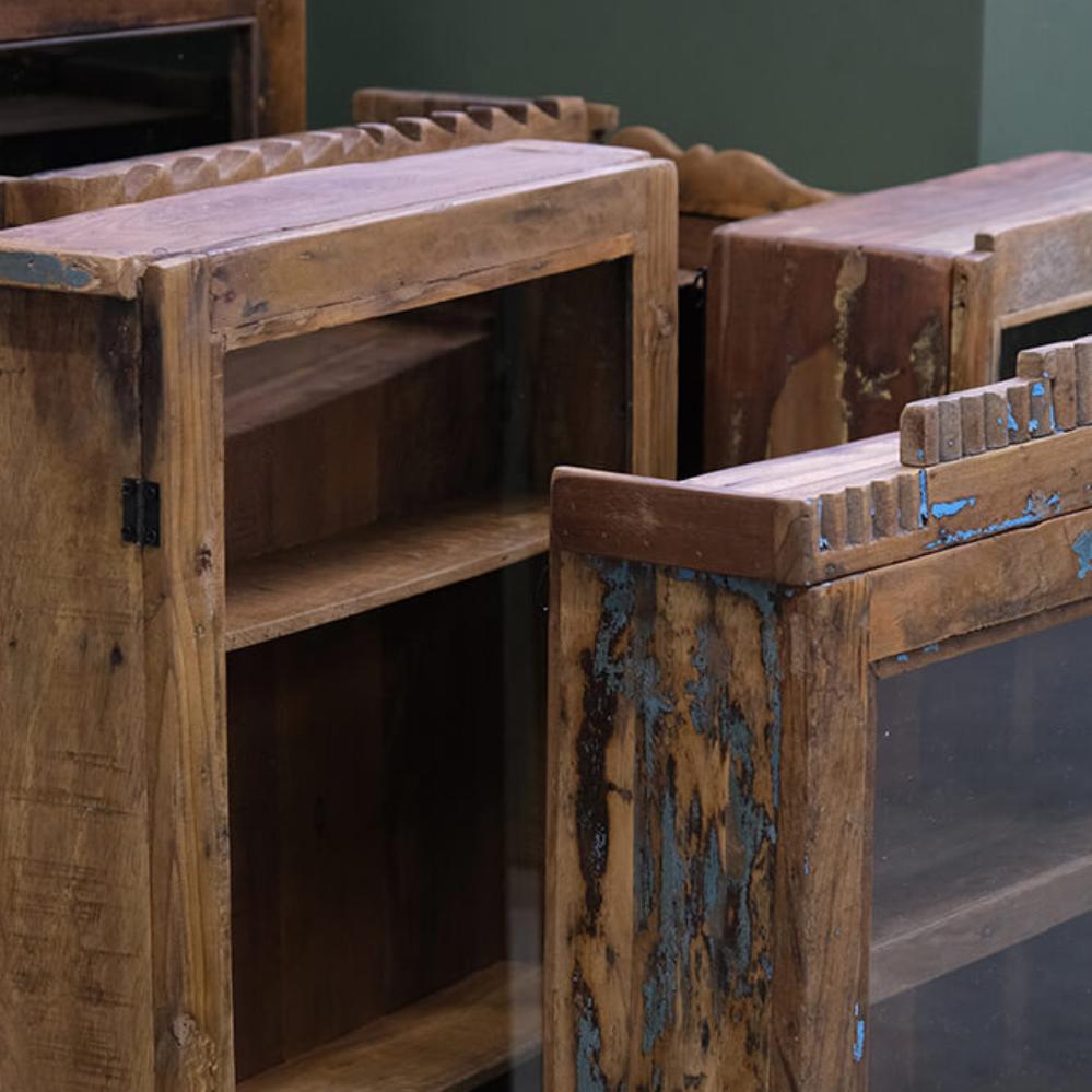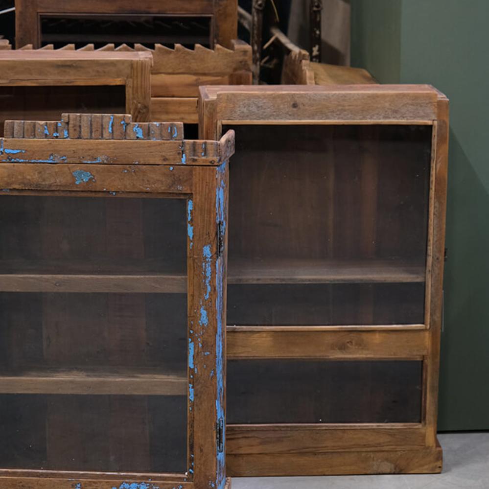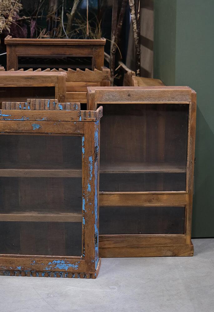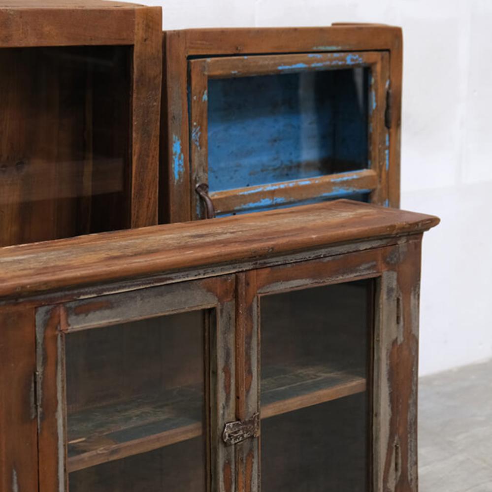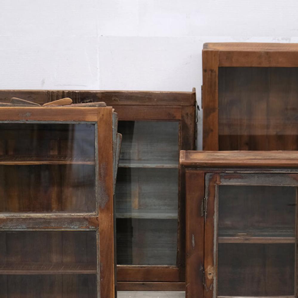 All of these beautiful wall cabinets have an authentic character and charm. Every cabinet features unique details and colours that tell its own story. The different layers of paint and patina give each piece a rustic, raw expression, perfect for creating a warm and personal atmosphere in your home or business. The raw, natural wood combined with the cabinets' original details makes them ideal for vintage decor and modern Nordic homes. These wall cabinets are perfect for storing and displaying small items with style and character.