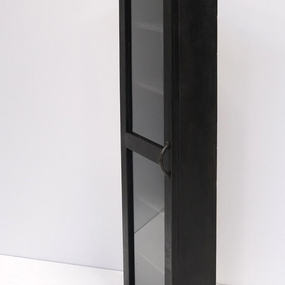 Do you miss storage space in your interior? Then a wall cabinet is always a hit. Here you will find one of the finest of its kind. Black painted wood, a glass door, six shelves, completely simple and stylish design, narrow and nice. The wall cabinet appears light and fine and will store your things in the most elegant way. The cabinet is also available in a lower model: D0908. The space between the shelves is 18 cm.