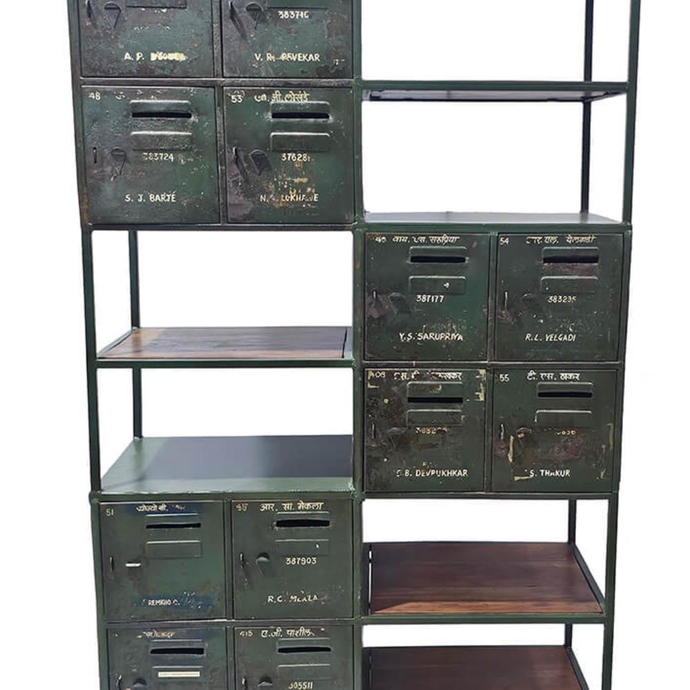 This masculine cabinet combines open shelves with authentic locker cabinets, bringing a strong industrial vibe to your space. With its sturdy metal frame and wooden shelves, the cabinet creates a cool balance between raw functionality and vintage charm. The locker cabinets bear traces of their previous life, with each engraving and scratch adding a story to the piece. The cabinets provide storage for smaller items, while the open shelves can be used for display or practical storage. This cabinet is ideal for a store, where it can function as both a display unit and a storage solution. In a restaurant, it can be used as part of the decor to keep cutlery, glasses, etc., organised. At home, the shelf will fit perfectly in an office, kitchen, or living room, where it can be used for storage and as an eye-catching part of the interior. Please note that the shelves vary significantly in colour and details (see photos).