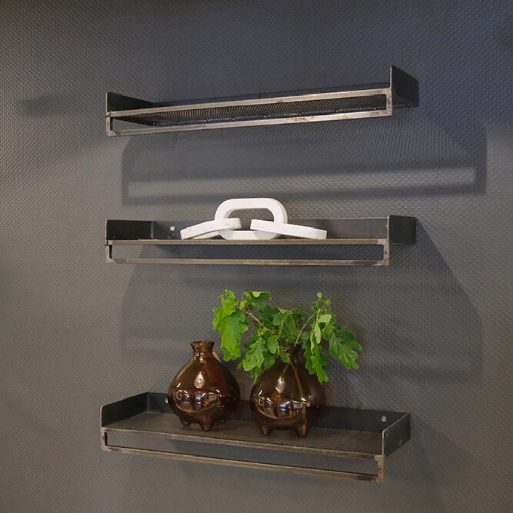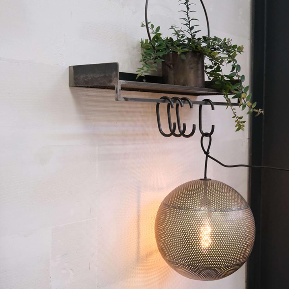 Industrial and cool shelf in perforated iron with a functional rail. The shelf has a raw and simple expression, which matches the Nordic interior style well. The shelf will look great in the bathroom for your favorite creams and towels. You can also use the shelf in the kitchen for tea towels and as a raw storage of spices, glasses, or oils. Styling hack: Add our Mr. S hook (item number: M16596 + M1518) to hang your favorite mugs or your kitchen utensils.
