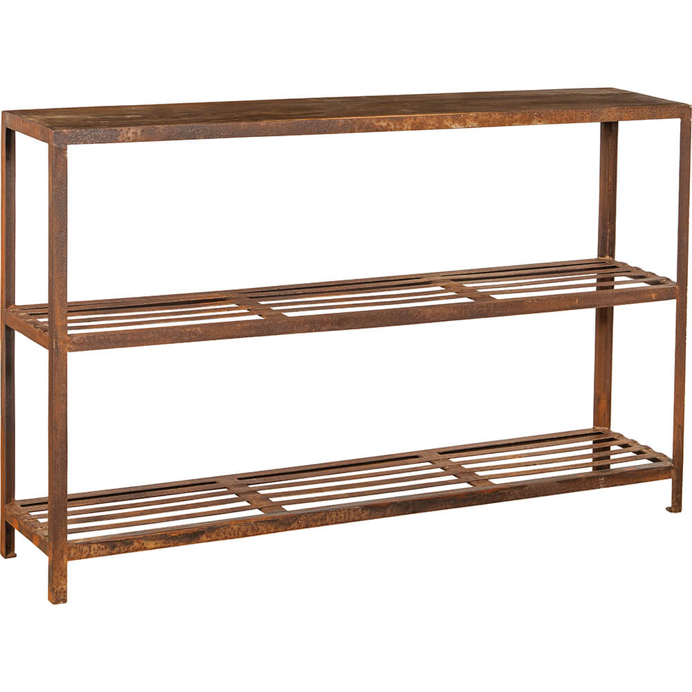 This old iron rack is perfect if you love raw, simple, and functional storage with plenty of charm. It is made with a solid iron frame and iron slat shelves that have developed the perfect patinated surface over the years, while the worn wooden top adds a warm contrast to the industrial look. Use it in the hallway for shoes and baskets, in the kitchen for tableware and utensils, or as a cool display shelf in your shop, café, or showroom. It is easy to style, robust in use, and has that authentic expression you simply cannot buy new. A true vintage favourite that brings both order and edge to your interior.