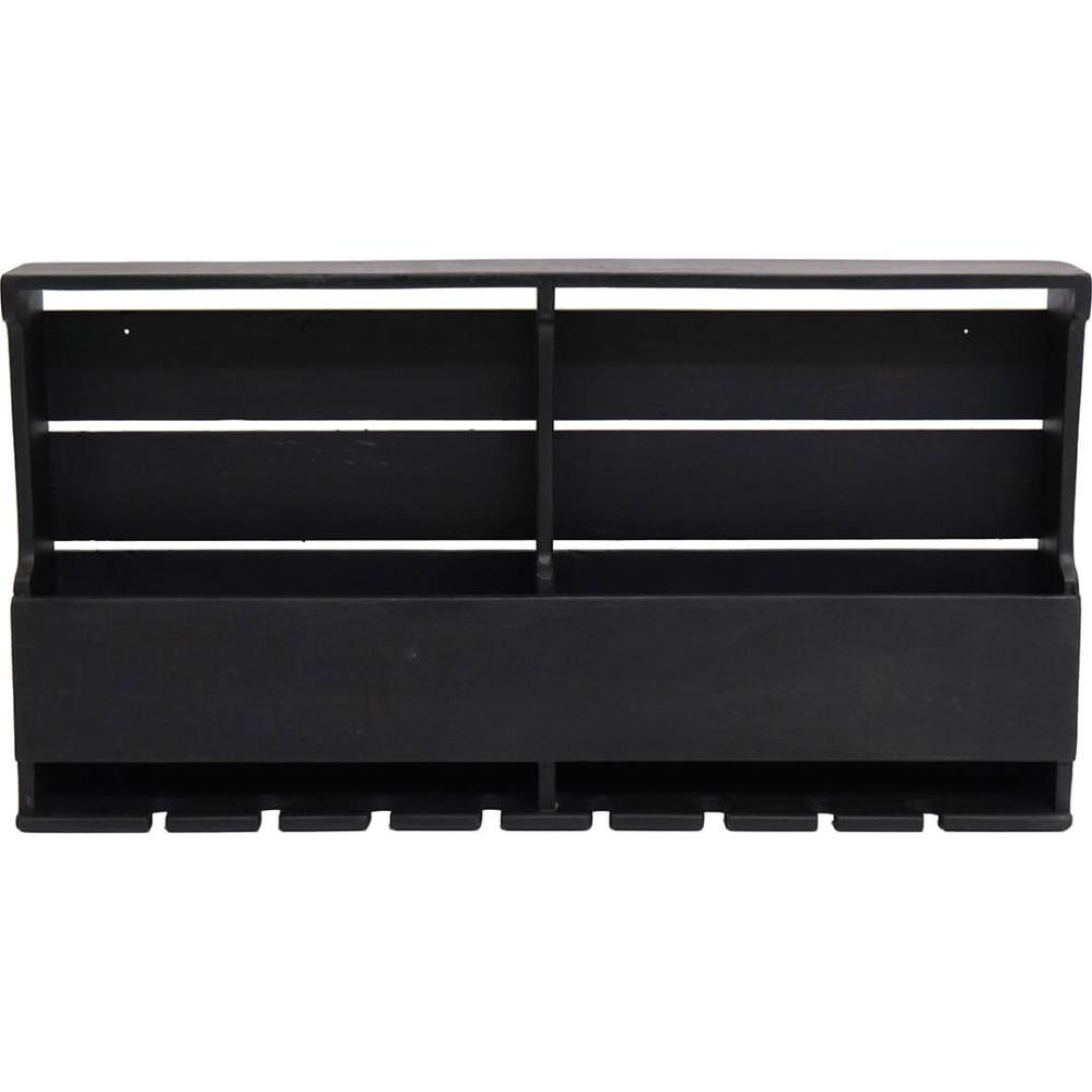 Smart and timeless wine rack in black painted wood. The wine rack can hang on the wall, and here you have the opportunity to display a selection of your favorite wines. Another wonderful detail is that you can hang and store your wine glasses at the bottom of the wine rack. You can advantageously hang several wine racks together in extension or staggered. It will spice up your decor in the kitchen, in the wine cellar or in your restaurant.