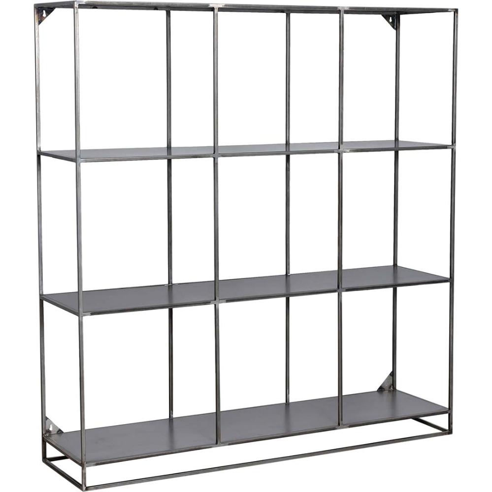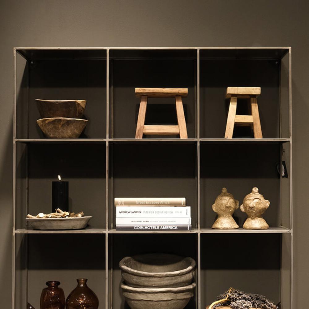 Stylish wall rack in iron with a light and graphic look. The rack has 3 shelves and 9 compartments with a shelf height of about 38 cm (39 cm measured from edge to edge), providing plenty of space for books, bottles, plants, or decorative objects. The open construction creates a sense of airiness and makes it easy to highlight your favorite items. The shelf works perfectly in the living room, kitchen, or a café where you want to combine practical storage with an industrial look. The solid iron frame ensures durability, while the simple design makes it easy to style in different settings. It can either be mounted on the wall or placed directly on the floor. This model is part of the Washington series, which comes in several other versions. Search for Washington in the search field to find the variant that best suits your needs.