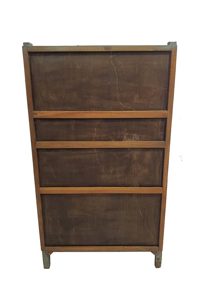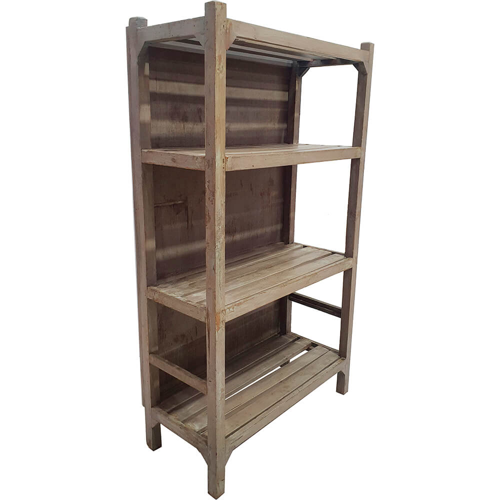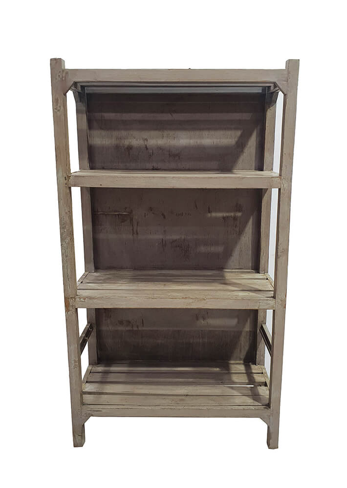 Here is an old wooden rack that makes no attempt to hide its age, and nor should it. The open slats bring airiness and lightness to its otherwise robust character, all held together in a construction that is both simple and durable. The rack was found in India and carries clear traces of its past. It is rustic and full of charm. Use the rack in a shop to display products with personality, in a restaurant for tableware or wine, or at home in the kitchen or living room where raw, characterful storage is needed. A wooden rack that is both functional and full of stories.