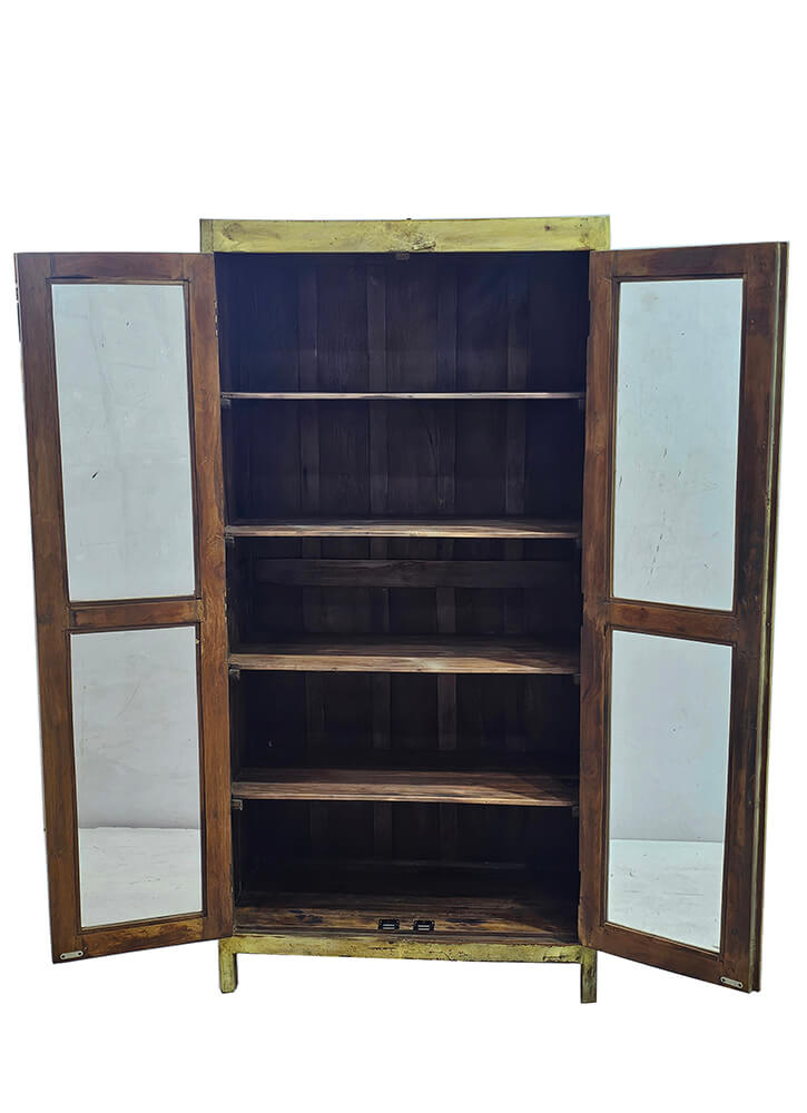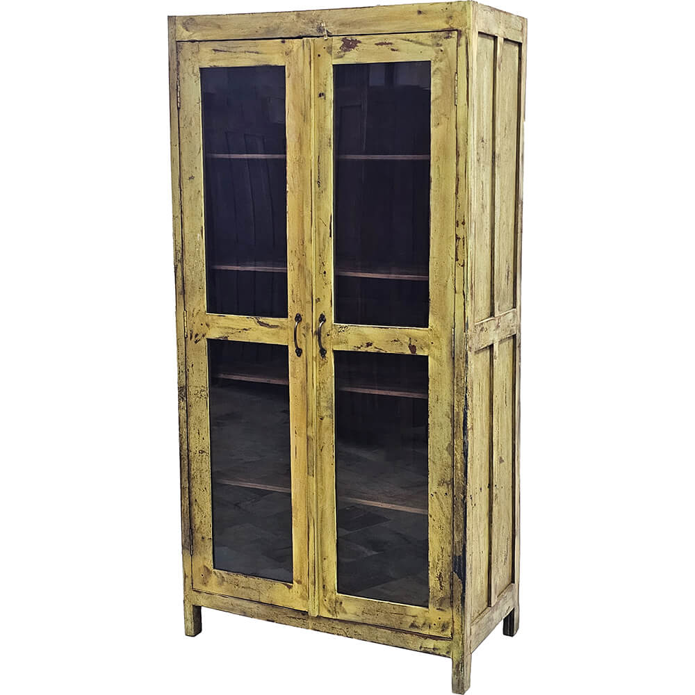 This old display cabinet is a true eye-catcher, not least because of its beautiful worn yellow finish that gives the piece plenty of charm and personality. The large glass doors make it easy to showcase your favourite items, whether it’s ceramics, glassware, books, or decorative objects that deserve a place in the spotlight. Inside, you’ll find spacious shelves with room for both decoration and storage, and the wood’s patina clearly shows that this cabinet has lived a long life. Small marks, colour variations, and signs of wear are part of its unique character and exactly what gives it soul in a modern home. Perfect for the living room, kitchen, or hallway if you want to add warmth, colour, and authenticity to your interior. A display cabinet with plenty of soul and a look you simply won’t find in new furniture.