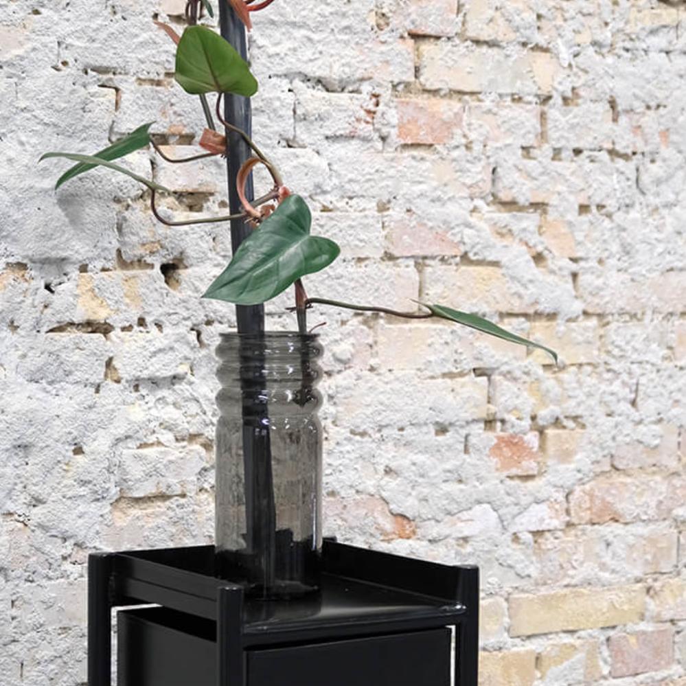 This beautiful little storage unit has become a true Trademark Living classic. It is made of black lacquered iron. Each drawer is 8 cm high, 25 cm wide and 29 cm deep, so there is really good storage space. A leather handle is mounted on each drawer. This small dresser can be used in any room in the home. In the bedroom as a bedside table. In the hallway for scarves, gloves, bicycle lights and keys. As a small side table next to your favorite chair in the living room for remote controls and magazines. In the bathroom for hair and skin products. There are so many options. If you should get tired of the cabinet in one room, it can easily be used elsewhere.
