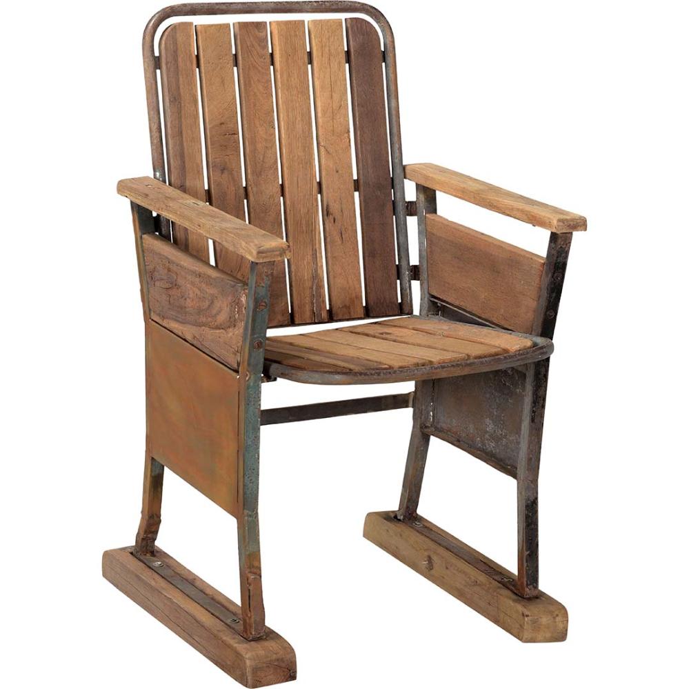 Old vintage cinema chair with wooden seat and backrest and a raw iron base. Beautiful and used with a historical expression. This chair has previously been part of an entire cinema chair series, but now cut up into single chairs to make it more usable in your home.
