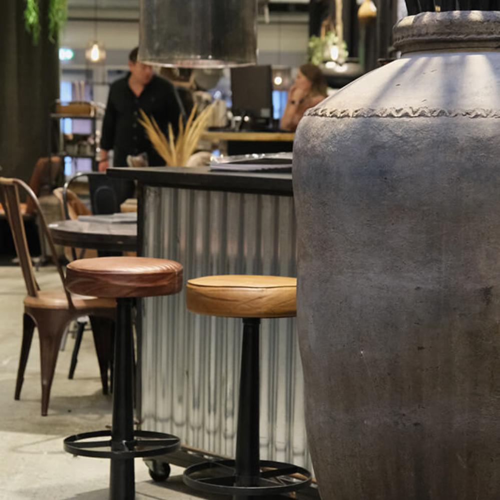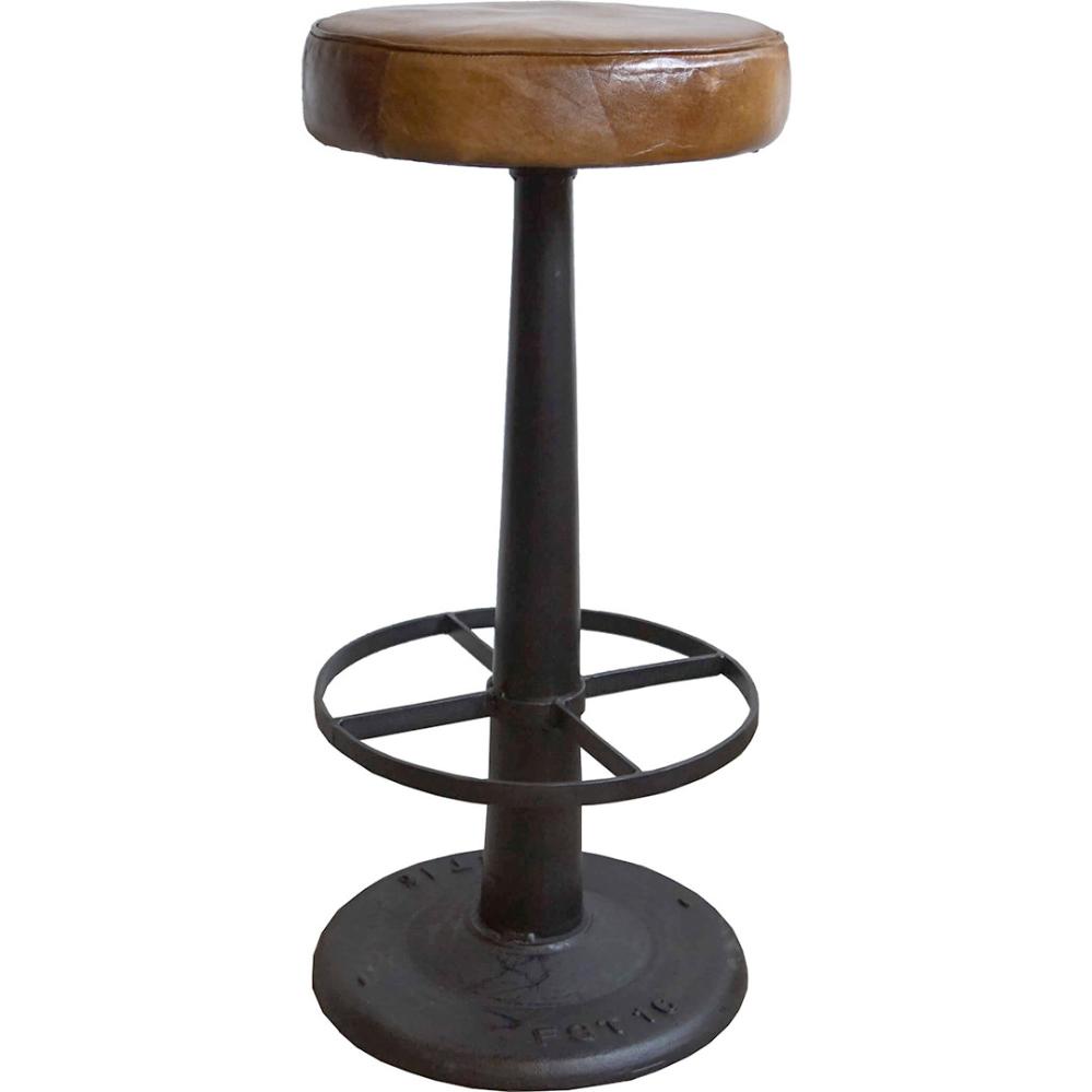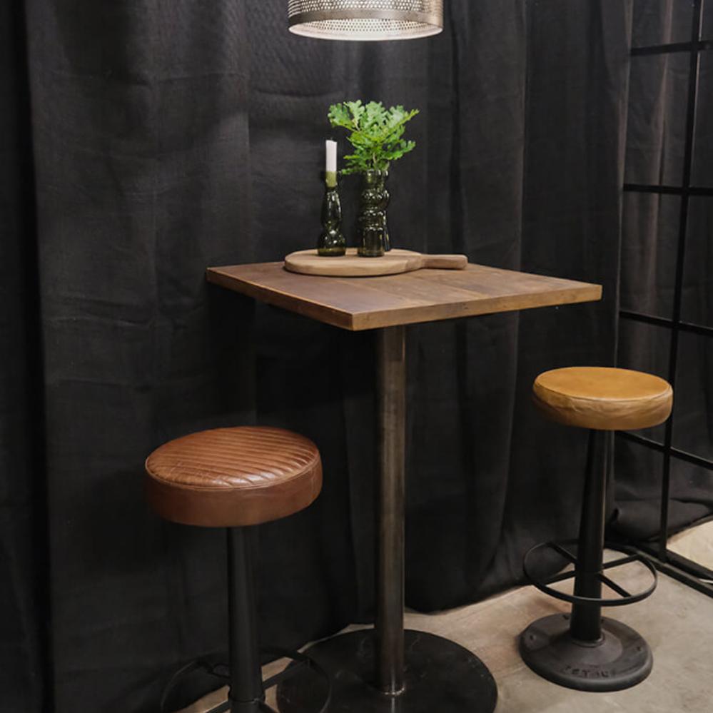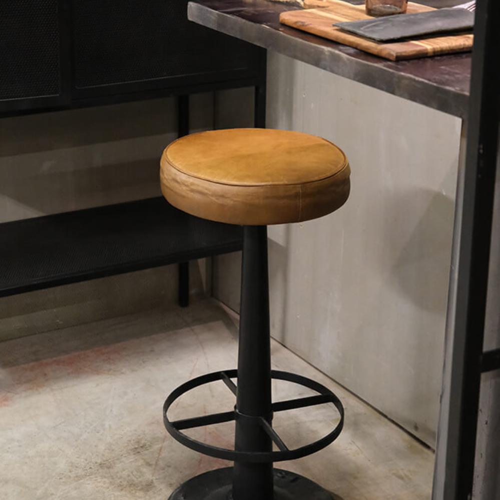 This barstool is the perfect blend of industrial and rustic aesthetics. With a padded leather seat offering comfort and a solid black iron base, the stool exudes robustness and character. The practical footrest provides additional support, making it ideal for bars and high tables at home. Its minimalist design and masculine expression make the stool well-suited for modern and industrial interiors – from cafés and restaurants to the cozy home bar area. This is a barstool that delivers both style and functionality.