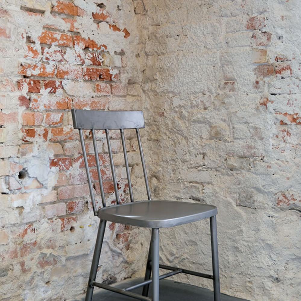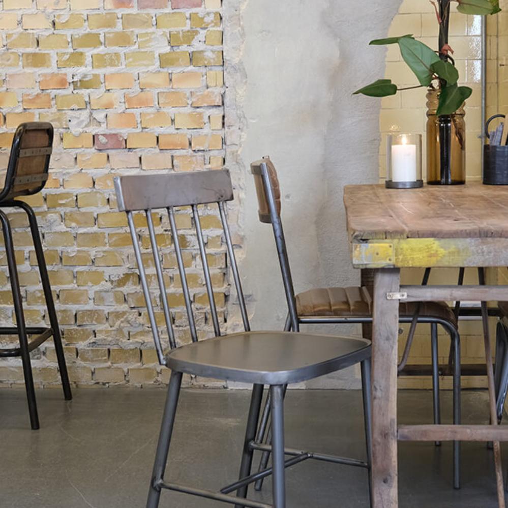 Give your dining area a raw and industrial touch with this iron dining chair. The chair is made of iron with a raw finish, giving it an authentic and rustic look. The simple backrest with vertical metal bars and a solid seat make it both sturdy and practical. Additionally, the chair's neutral colour makes it easy to combine with different tables and interior styles.