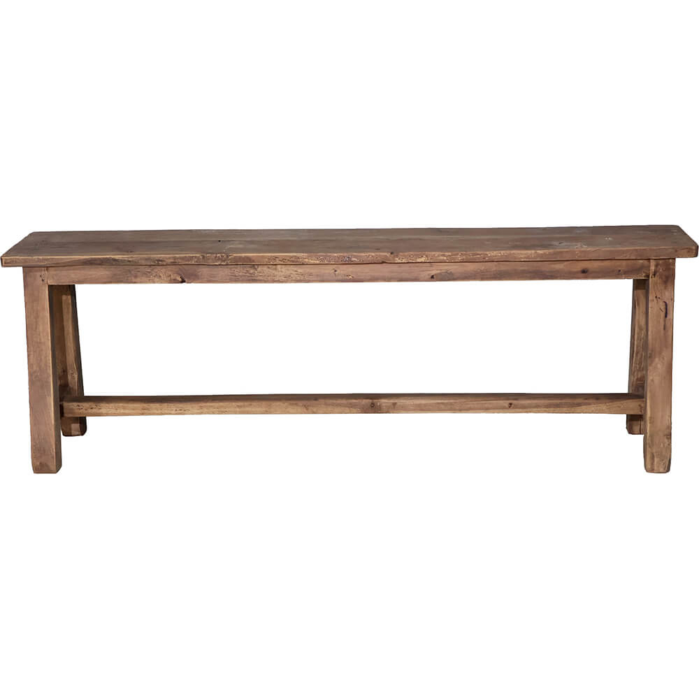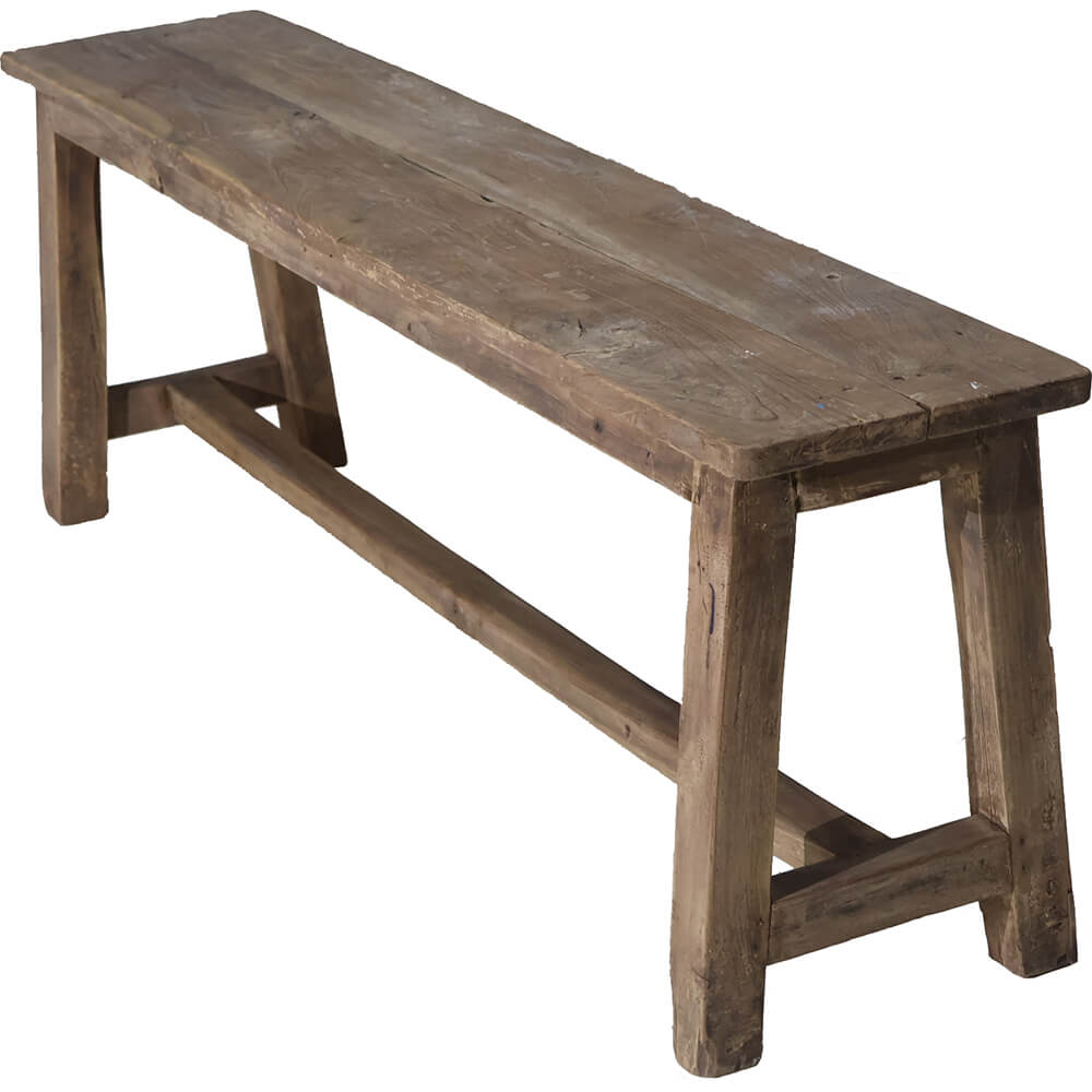 This old wooden bench has plenty of natural charm and a wonderful raw simplicity. It is made of beautifully patinated wood that carries the marks of many years of use in the best possible way. Use it in the hallway, in front of the dining table, at the foot of the bed, or in a shop for product display. It adds warmth, personality, and a touch of history to any room. A timeless classic that works both practically and aesthetically, and only becomes more beautiful over time.