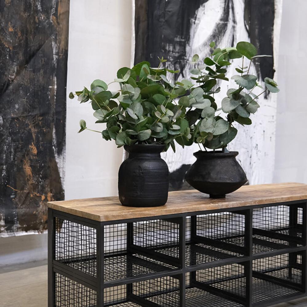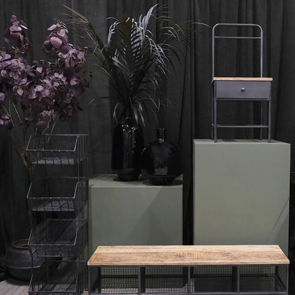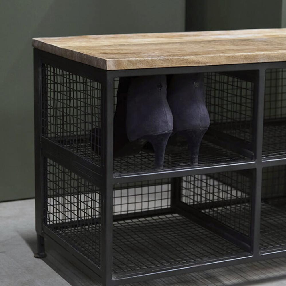 This shoe rack is both practical and stylish with its combination of wood and metal. The 8 spacious sections provide ample room for shoes or storage boxes for items like scarves, hats, and gloves. The solid wooden top doubles as a bench, making the shoe rack ideal for the entryway or wardrobe. The industrial look of the metal gives the piece a raw edge that fits perfectly into modern, minimalist, or rustic interiors. A functional solution that organises and adds character to your home. Measurements of each section: H:17 cm., W:18 cm., D:33 cm.