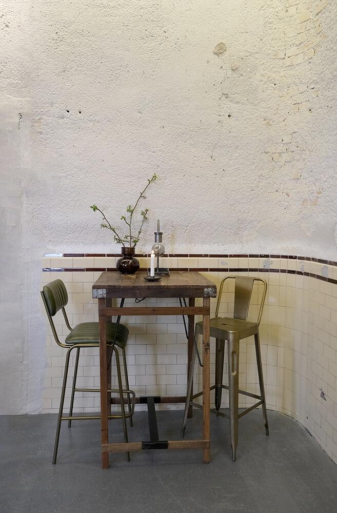 This barstool in a stunning antique brass color brings a unique touch to any interior. Its raw and industrial look makes it a favorite for both private and professional settings. For added comfort, you can upgrade it with one of our seat cushions – choose between black (M1401) or brown (M1404). The cushions are easily attached using the pre-drilled screw holes in the seat. A classic stool with a twist of vintage charm, perfect for everything from your home bar to a stylish café.