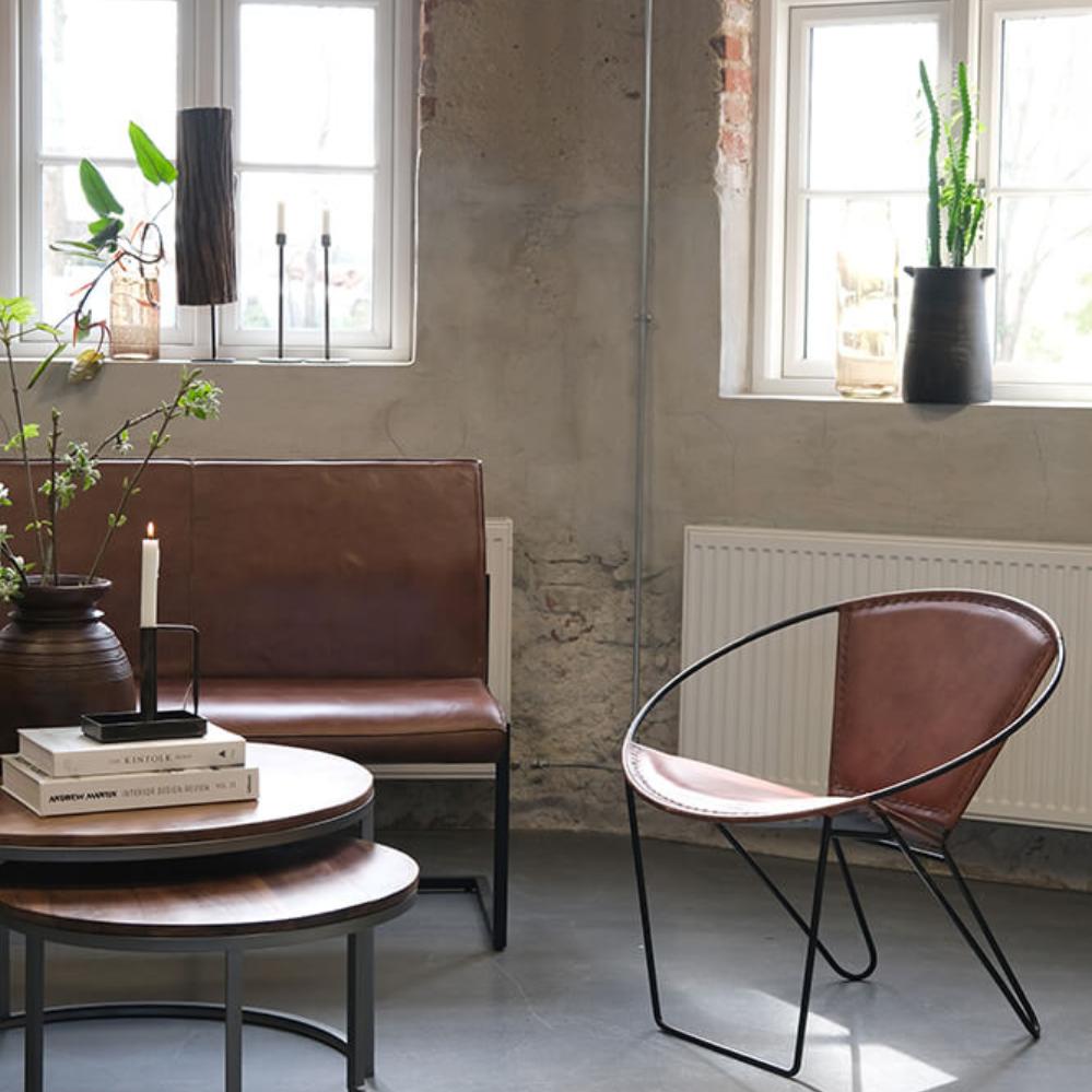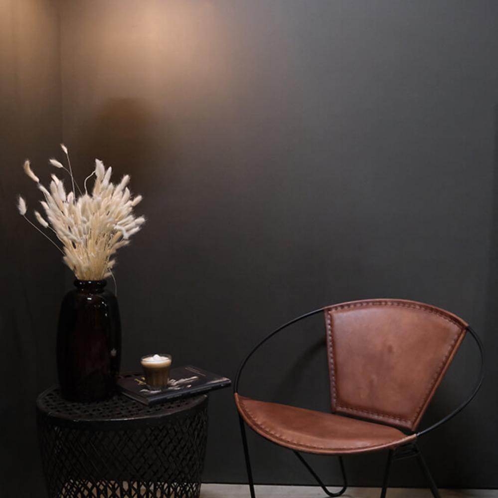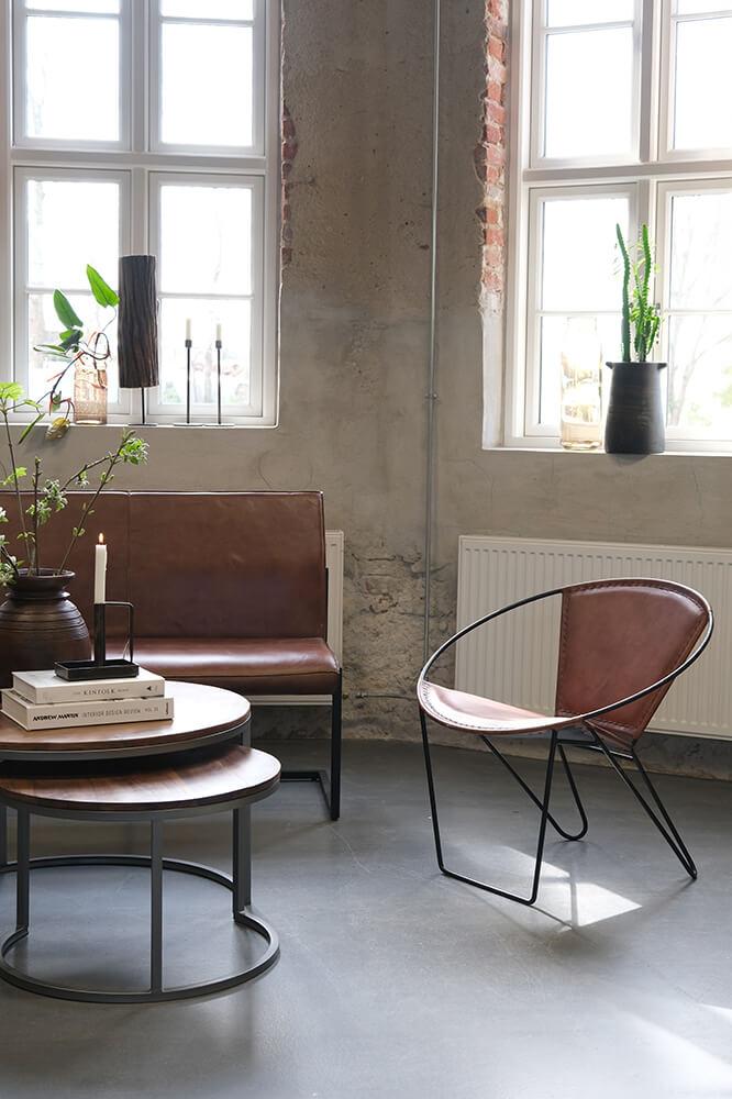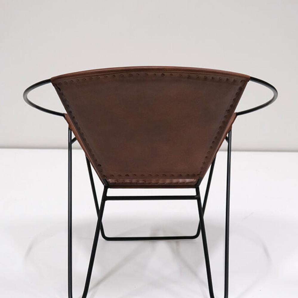 A super nice lounge chair that looks simple and stylish. The chair is made of a black lacquered iron frame with leather on the seat and backrest. Since the shapes are soft, light and round, the result is a beautiful modern overall expression that exudes good style.