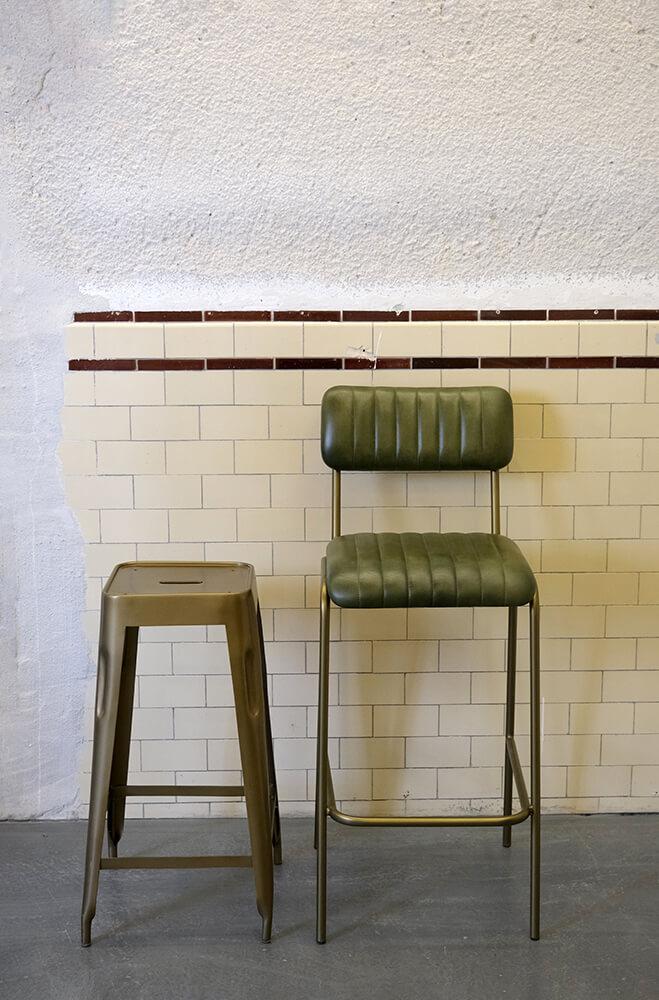 Gorgeous bar stool with soft shapes and endless comfort. The bar stool is covered with padded quilted buffalo leather in seat and back. The tall slim iron frame gives the bar stool a classic and light expression. Please note that the bar stool is delivered in two parts with a small bag of screws in order for you to easily mount the backrest on the chair. Search for MA0114 to find a matching dining chair.