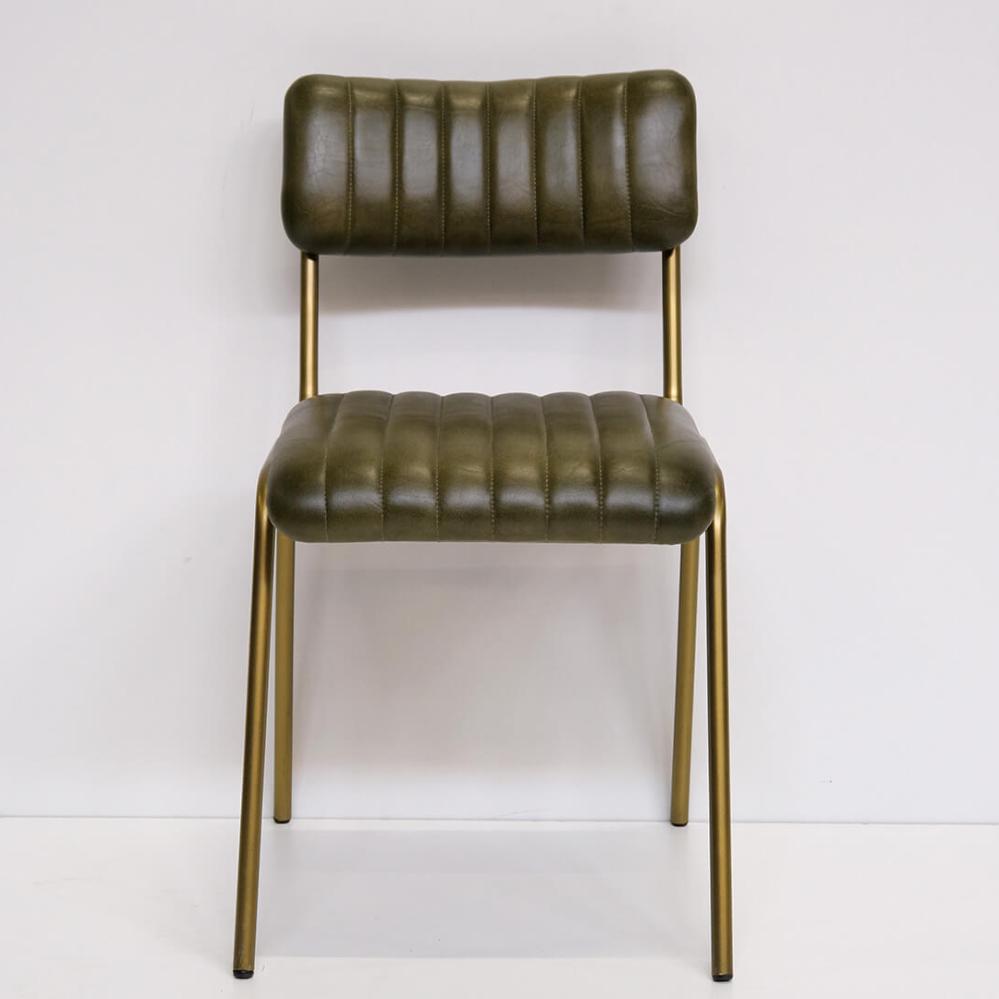 This Diner dining chair boasts a cool vintage look that truly stands out. Featuring a quilted green buffalo leather seat and backrest combined with a brass-colored frame, this chair is anything but ordinary. Here, you’re not compromising – the chair offers it all: great seating comfort, an eye-catching design, and a lightweight structure that makes it easy to integrate into any interior. The green leather and brass frame create a bold and distinctive look, adding plenty of personality to the space. Perfect for the dining table at home, in a café, or in a restaurant where you want to establish a stylish and unique atmosphere.