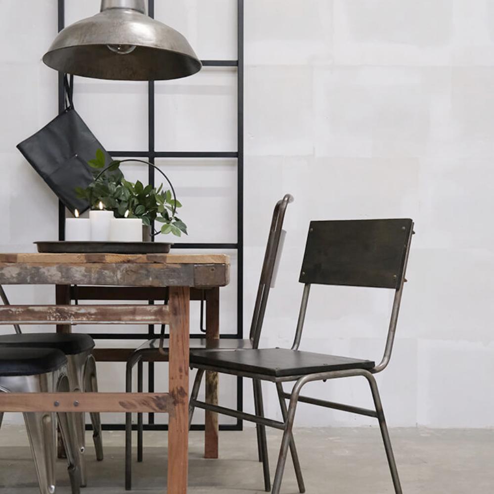 Here you have a simple and robust dining chair that fits into the raw and rustic decor. The chair has a lacquered iron frame. Seat and back are made of wood. This chair can be used to advantage in your café or restaurant. It is easy to clean with a damp cloth. If you want to add to the comfort, you can use a seat cushion or a beautiful lambskin.