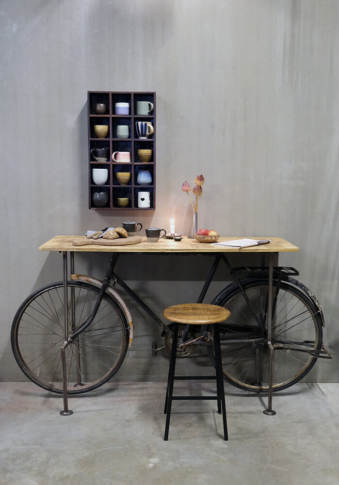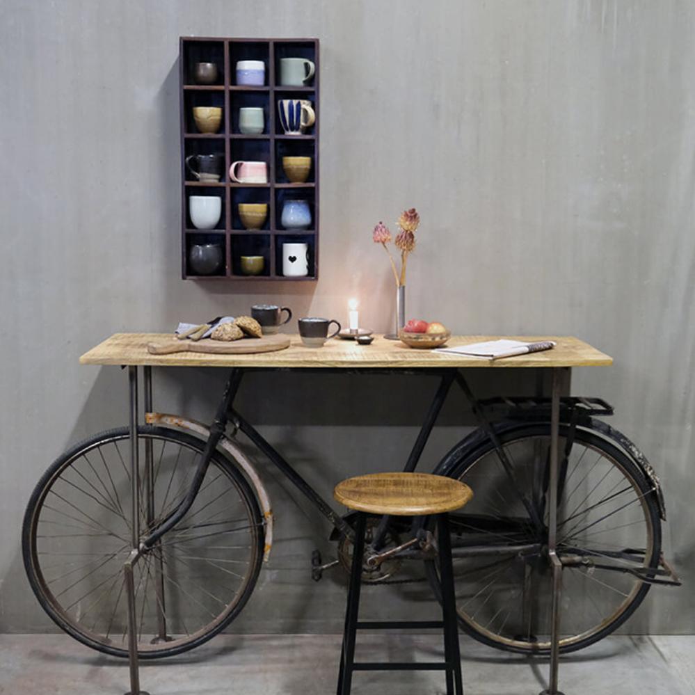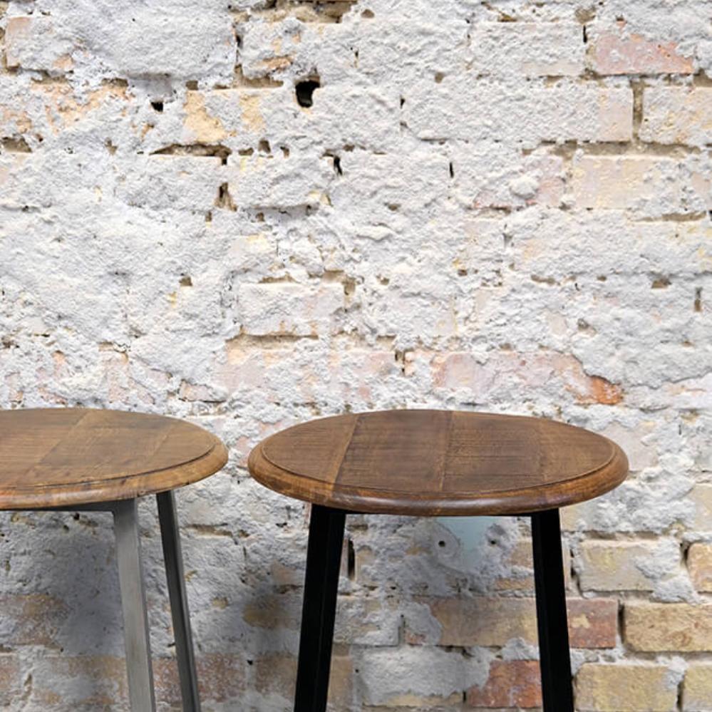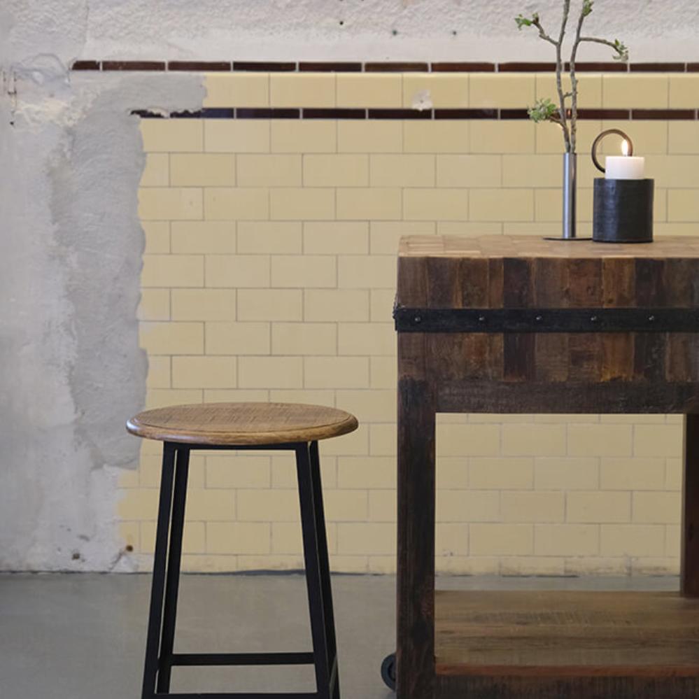 This tall stool has a sleek and raw look with its black frame and dark wood seat. The minimalist black metal frame combined with the warm wood seat creates a clean design that fits perfectly in both industrial and modern interiors. The stool's simple yet sturdy construction makes it ideal as a bar stool or for high tables in both private and commercial settings such as cafés or restaurants. The dark wood adds an organic and natural element that softens the industrial vibe.