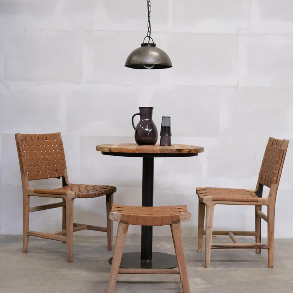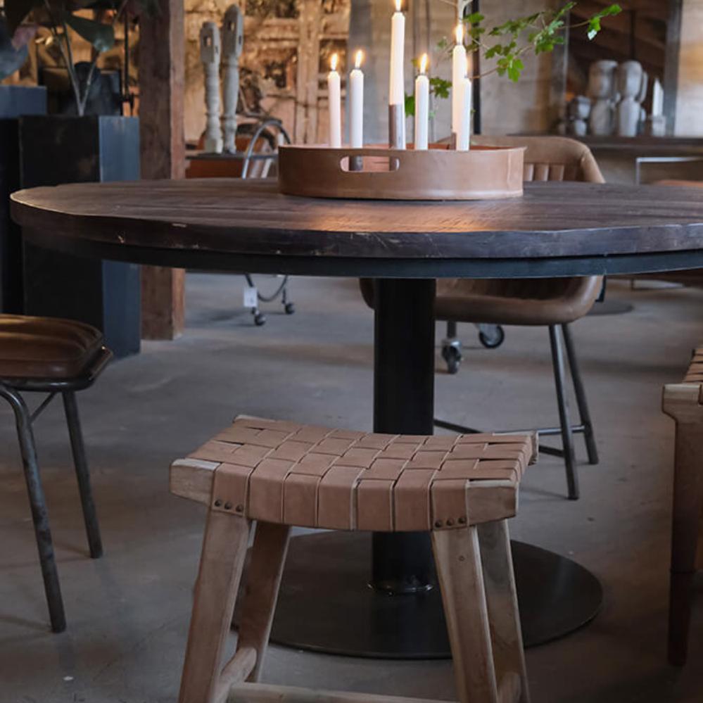 James stool with leather braid - brown