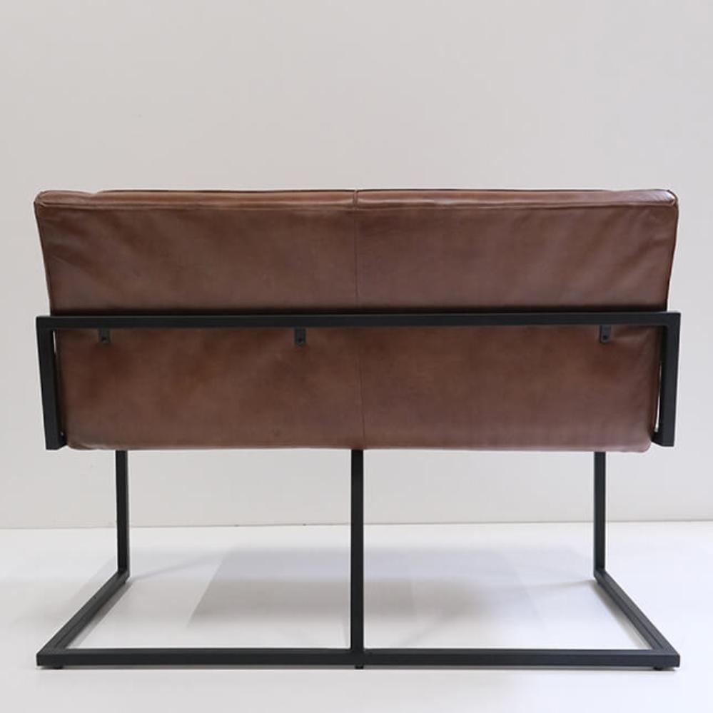 The Judi lounge sofa combines a solid black lacquered iron frame with a seat and backrest upholstered in a georgeous brown buffalo leather. Its simple and clean design makes it perfect for both private homes and professional settings like cafés and restaurants. The padded seat and backrest ensure a comfortable seating experience while adding a vintage vibe and a touch of style to the room. Delivered ready to use, there's no assembly required. A lounge sofa that exudes quality and character, effortlessly blending into your interior for a cool and functional look.
