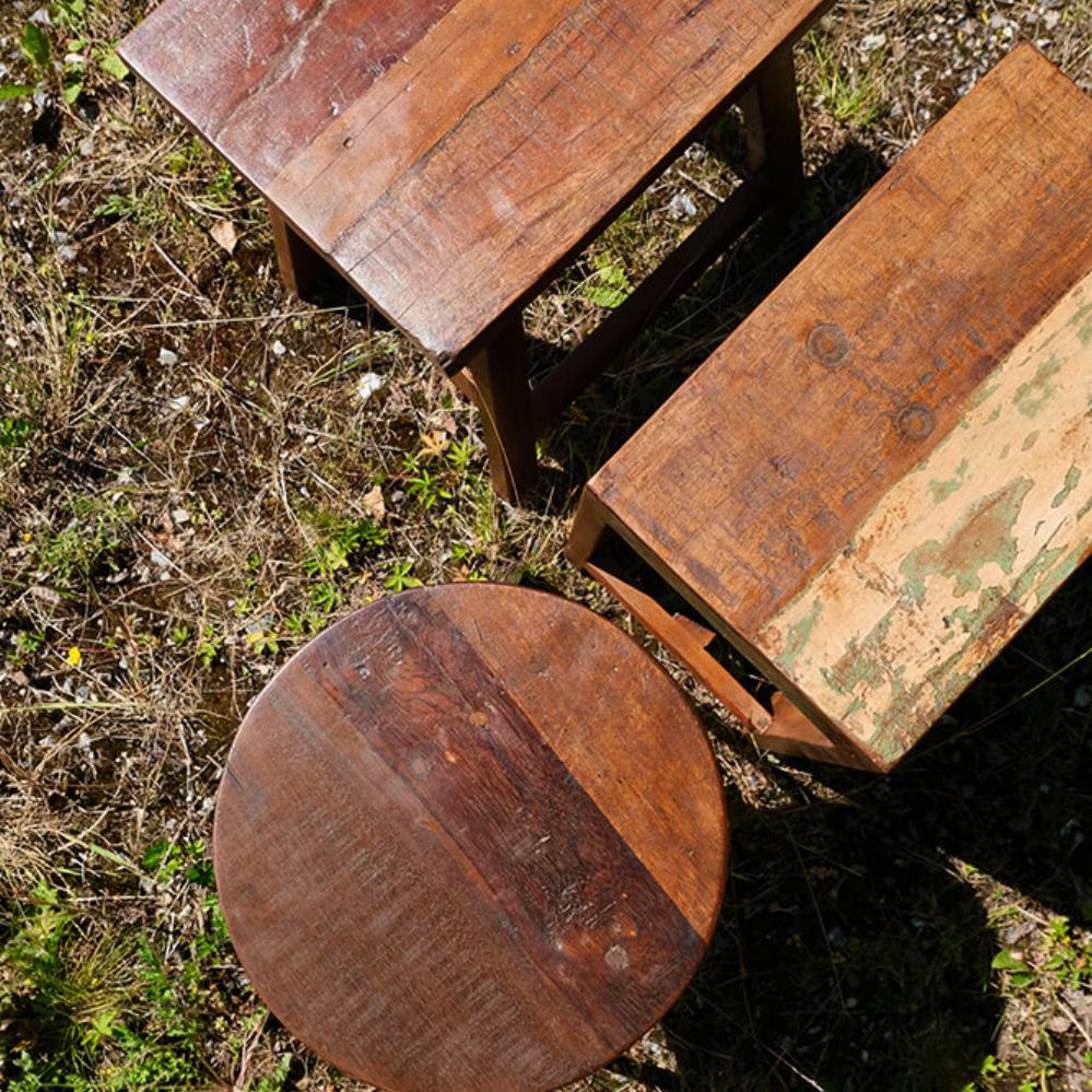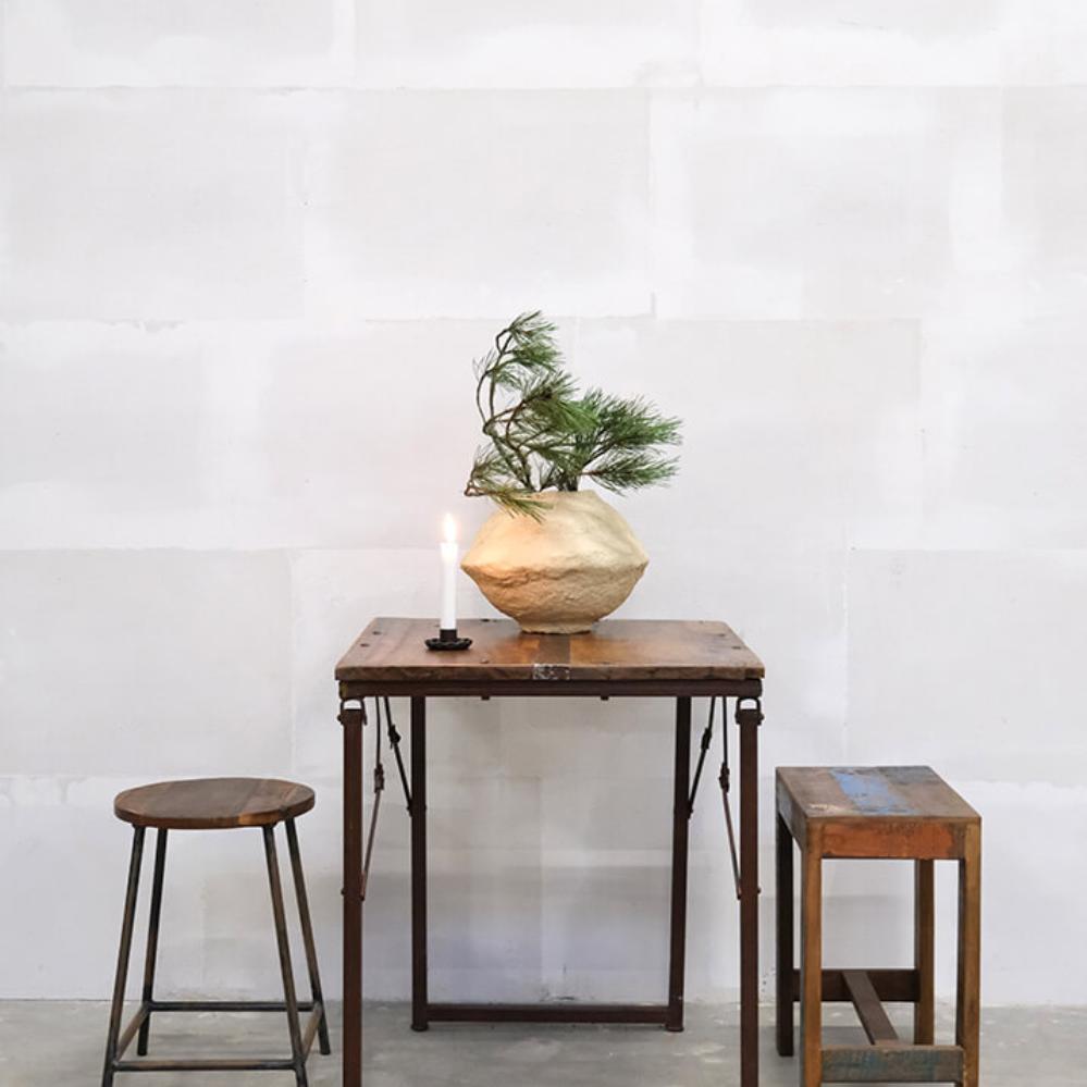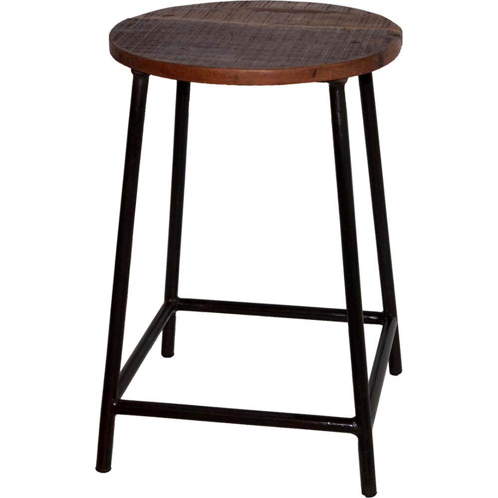 Cool iron stool with round seat in reclaimed wood. The stool has a simple and a slightly rustic look and will fit nicely into the modern decor. Use it as a supplement at the dining table or as decoration the hall or even as a small side table by the bed.
