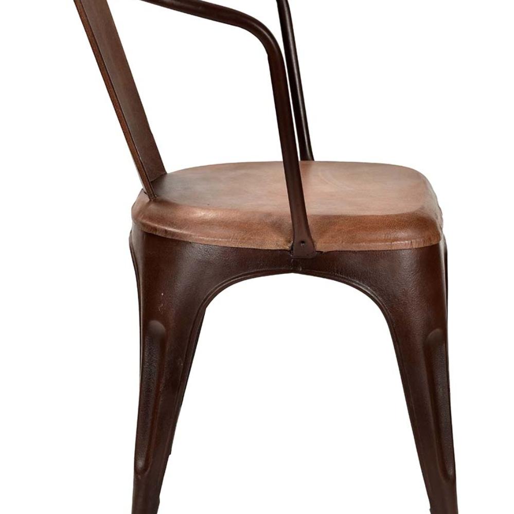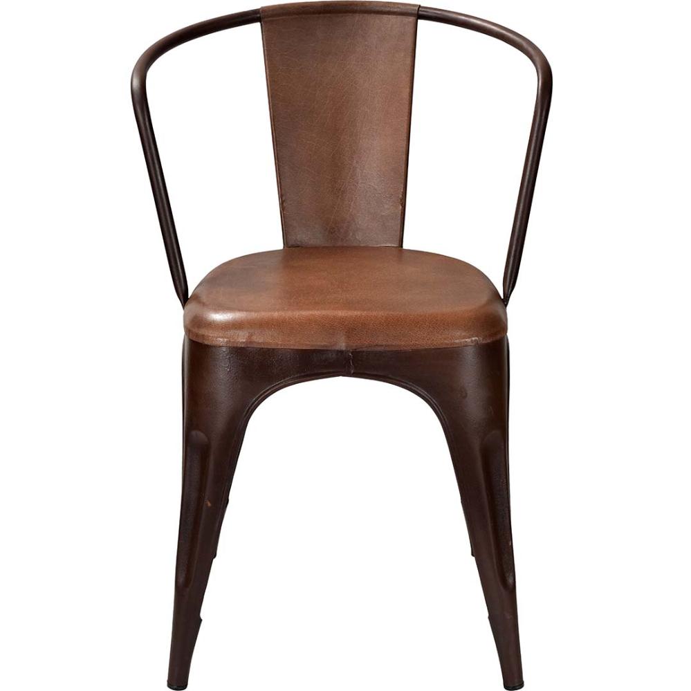 This Living dining chair in rust finish with a leather seat and backrest perfectly combines raw design with comfort. The durable leather adds warmth and charm, while the sturdy metal frame ensures a solid construction built for everyday use. The dining chair is not only visually appealing but also practical – it can be stacked, making it ideal for both homes and venues like cafés and restaurants where flexibility is a must. A sleek and functional chair that adds character to any space. Please note that the chair has no padding.