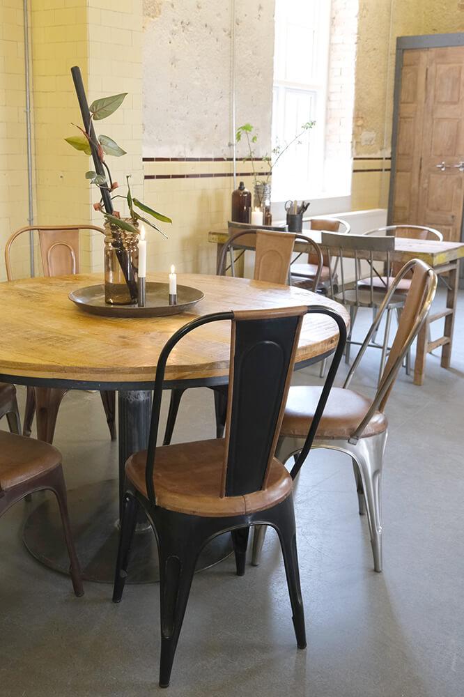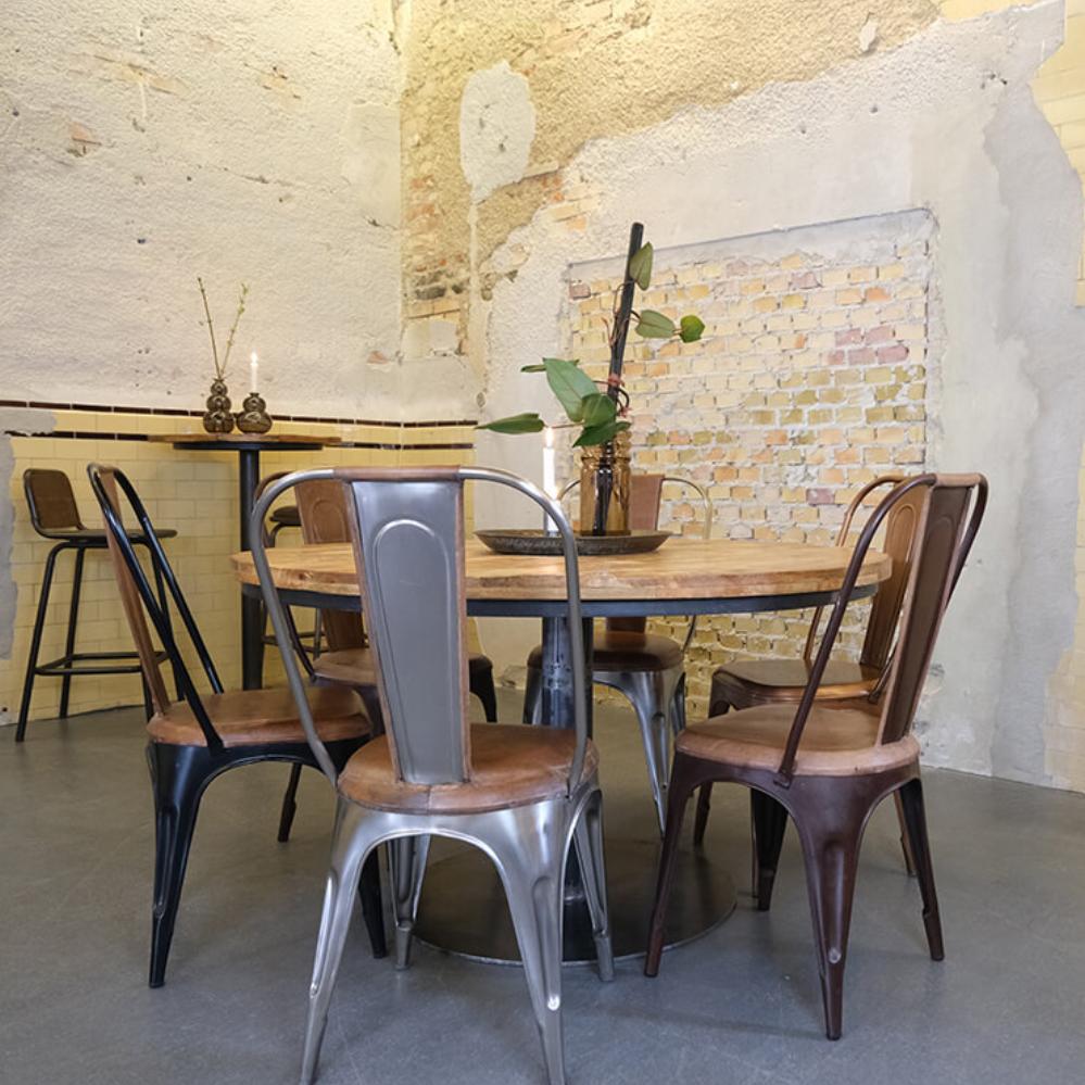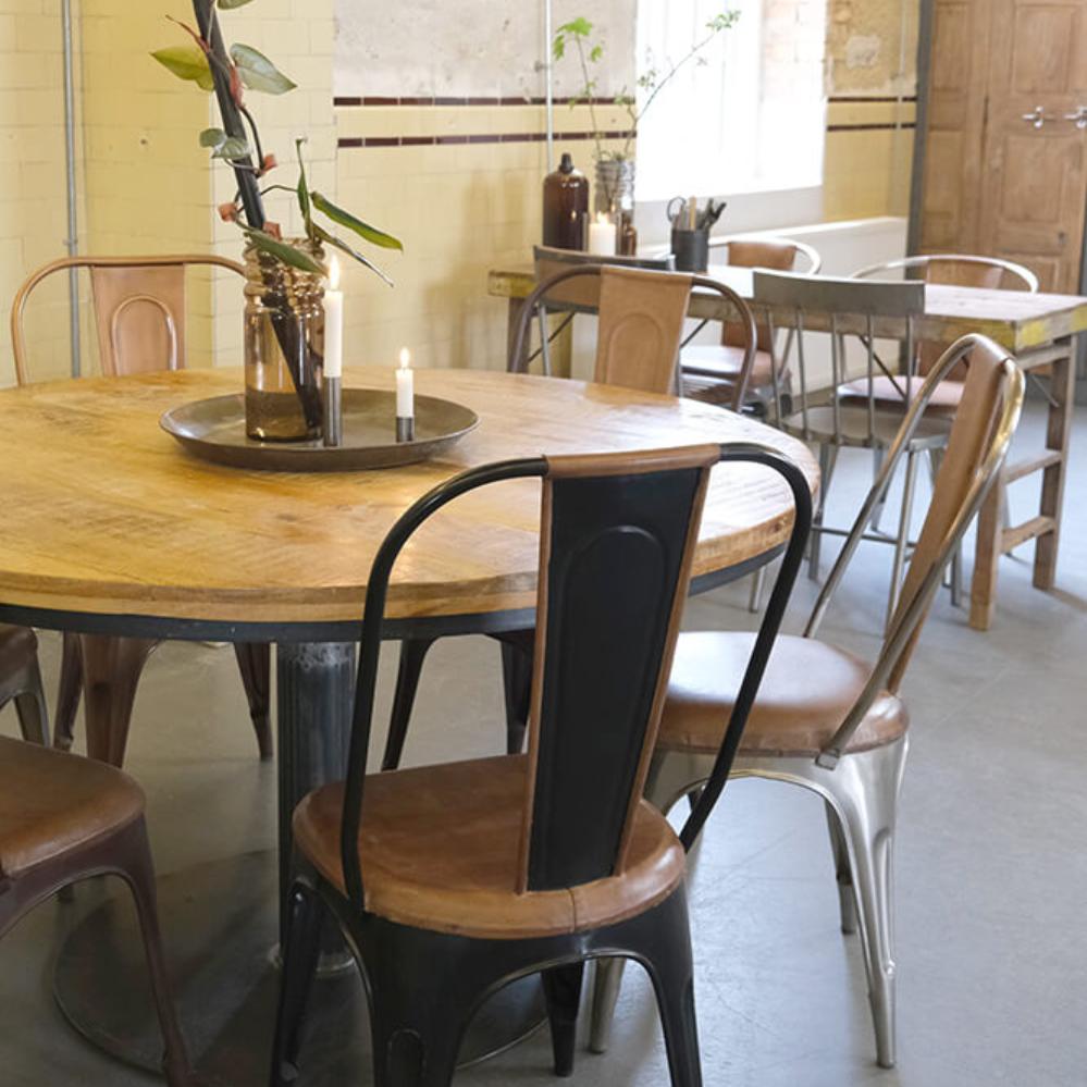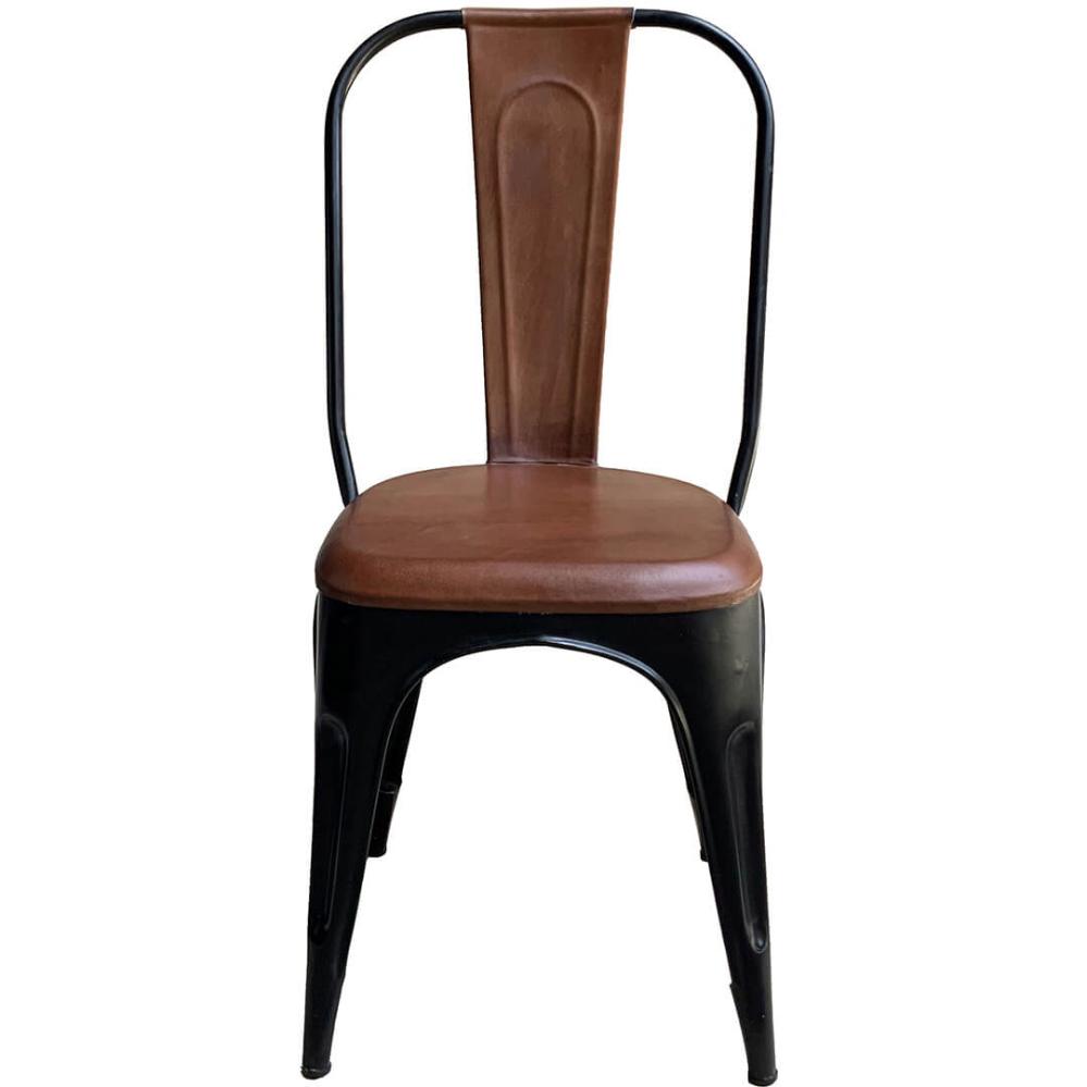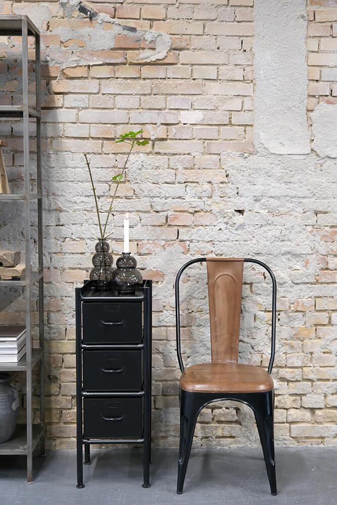 This stylish Living dining chair in antique black with a high backrest perfectly combines function and style. The seat and backrest are upholstered in warm brown leather, creating a striking contrast with the black metal frame. The chair adds vibrancy to your interior and contributes to a cozy and inviting atmosphere. It is ideal for both private homes and professional settings like cafés and restaurants, where its durable materials and stackable design make it practical and versatile. Use it on its own or create an exciting look by mixing it with other chairs. Perfect for those who want a raw and stylish element that adds a personal touch to any space.