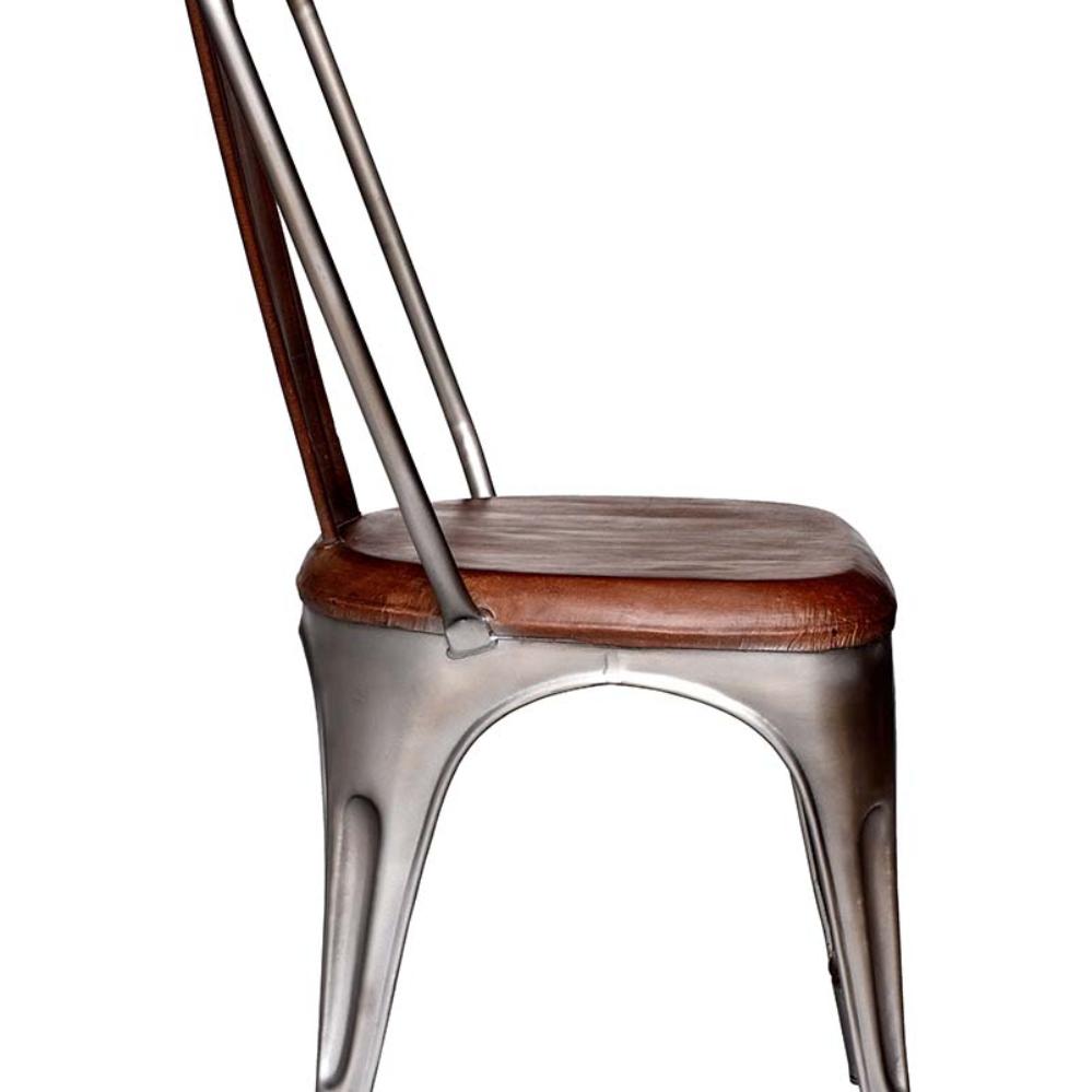 This Living dining chair with a high back combines shiny metal with brown leather on both the seat and backrest, creating a raw yet sophisticated expression. The warm brown leather color contrasts beautifully with the shiny metal frame, adding a sense of comfort and character. The chair is sturdy and well-suited for homes, cafés, or restaurants. With its timeless look and high backrest, it is both practical and stylish, perfect for creating a cozy and inviting atmosphere. A standout piece of furniture that brings a unique combination of raw metal and soft leather to any room.