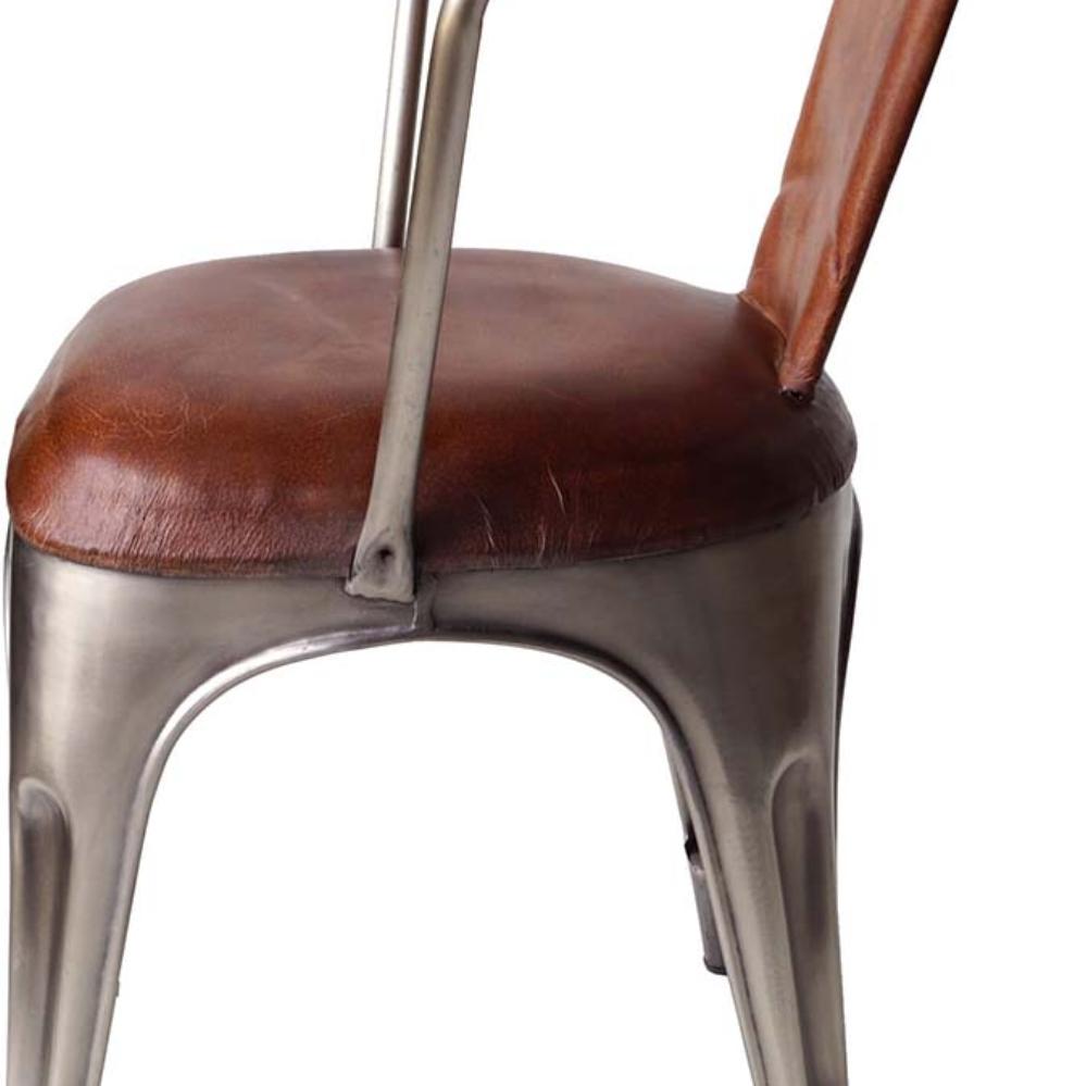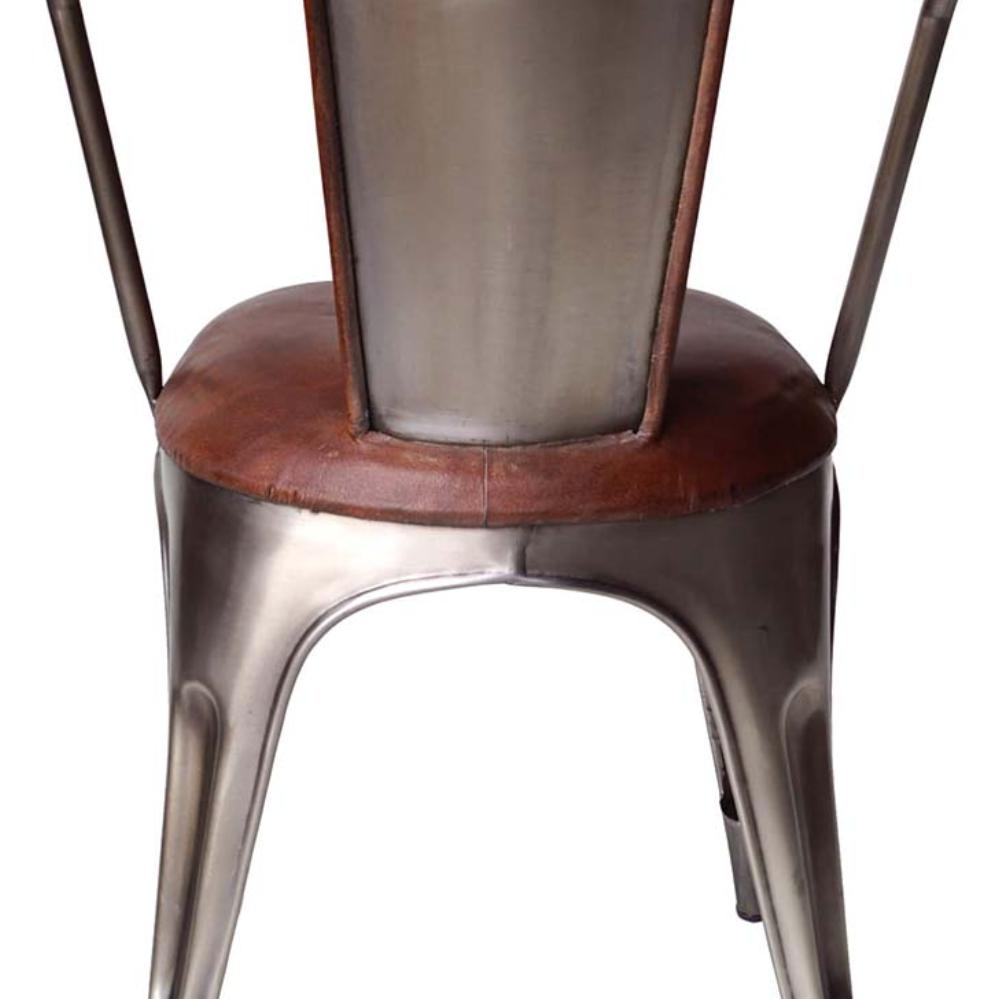 Very cool upholstered Living dining chair in shiny metal with armrests, combining an industrial look with classic comfort. The chair features brown antique leather on both the seat and backrest, ensuring a comfortable sitting experience. With its unique design and gleaming metal frame, this chair will enhance any home or office interior, adding plenty of character. Perfect for cafés, hotels, and private homes, it creates a striking and distinctive look. With this chair, you’ll undoubtedly stand out and add a raw yet stylish element to the room. A chair that is both practical and decorative.