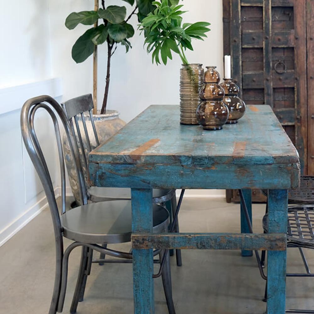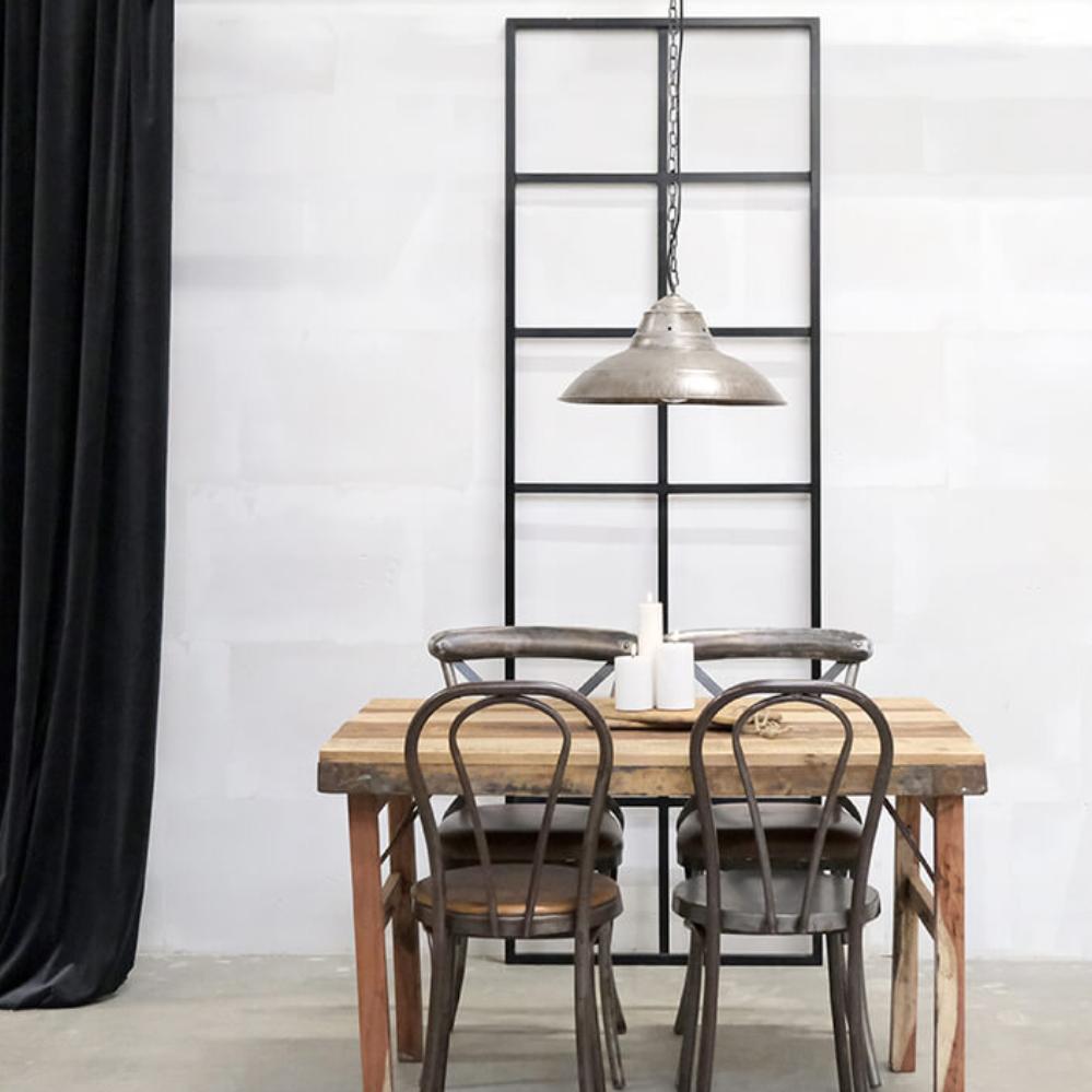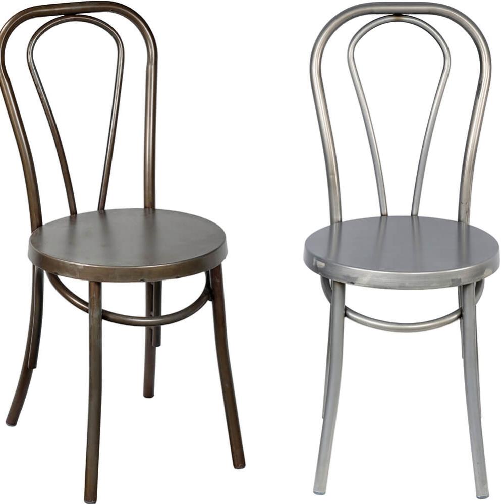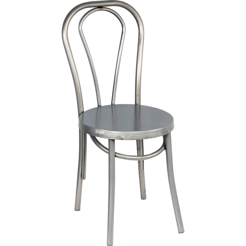 Dining chair in antique zinc with soft round shapes that creates modern and cozy surroundings. This chair is perfect for our small round table or our old wooden tables. If you want extra comfort, you can order a loose cushion in brown leather. You can find it here in the shop - item number M1407.