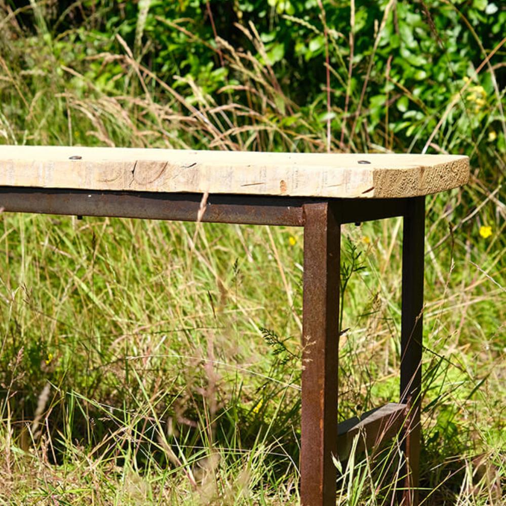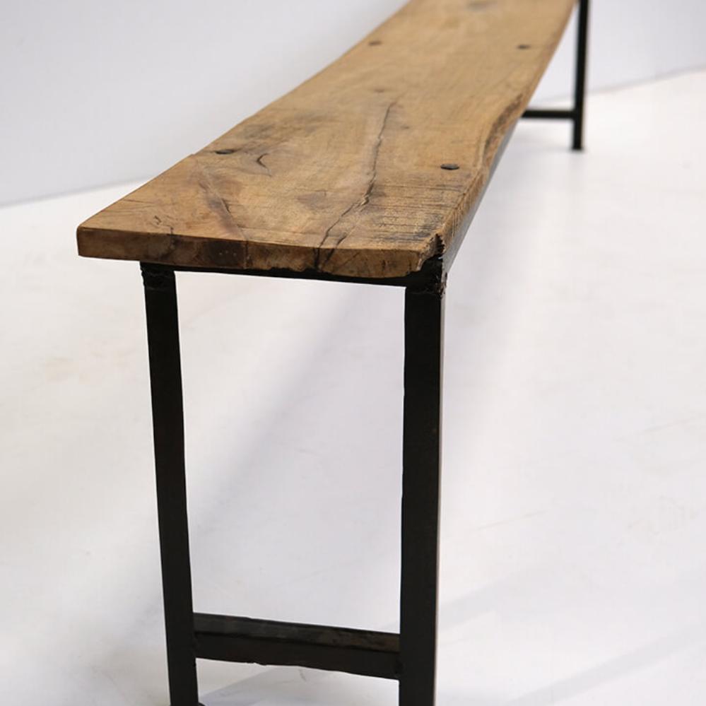 Old wooden school bench with patina and iron frame and base. Use the bench as a low piece of furniture or a low console table on which you can place some of your beautiful things. For you who think reuse when shopping. As these benches are original old school benches, there will be deviations from the bench shown in the shop. IMPORTANT - The size varies greatly on these items.