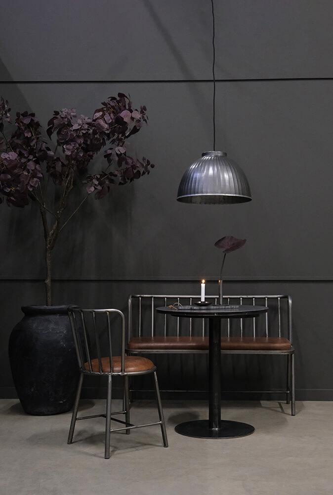 Elevate your dining experience with our elegant Manhattan dining chair with a leather seat and padding. This chair beautifully combines durability and style with its iron base and charming slats pattern. The comfortable leather seat adds a luxurious touch. Create a modern and timeless atmosphere around your dining table with this chair or let it stand alone, exuding coolness.