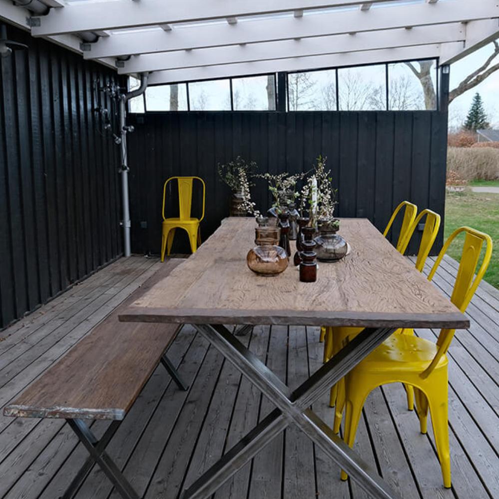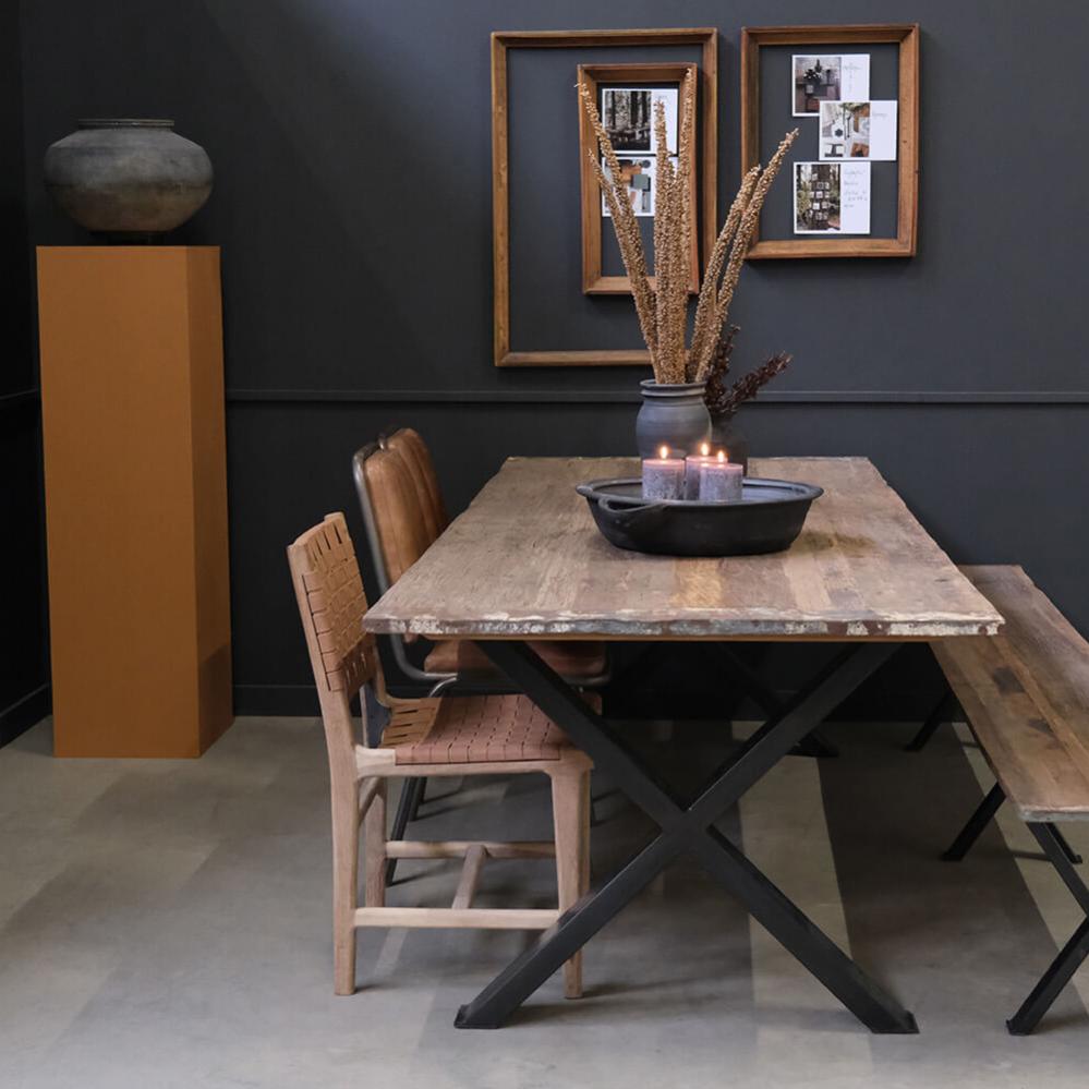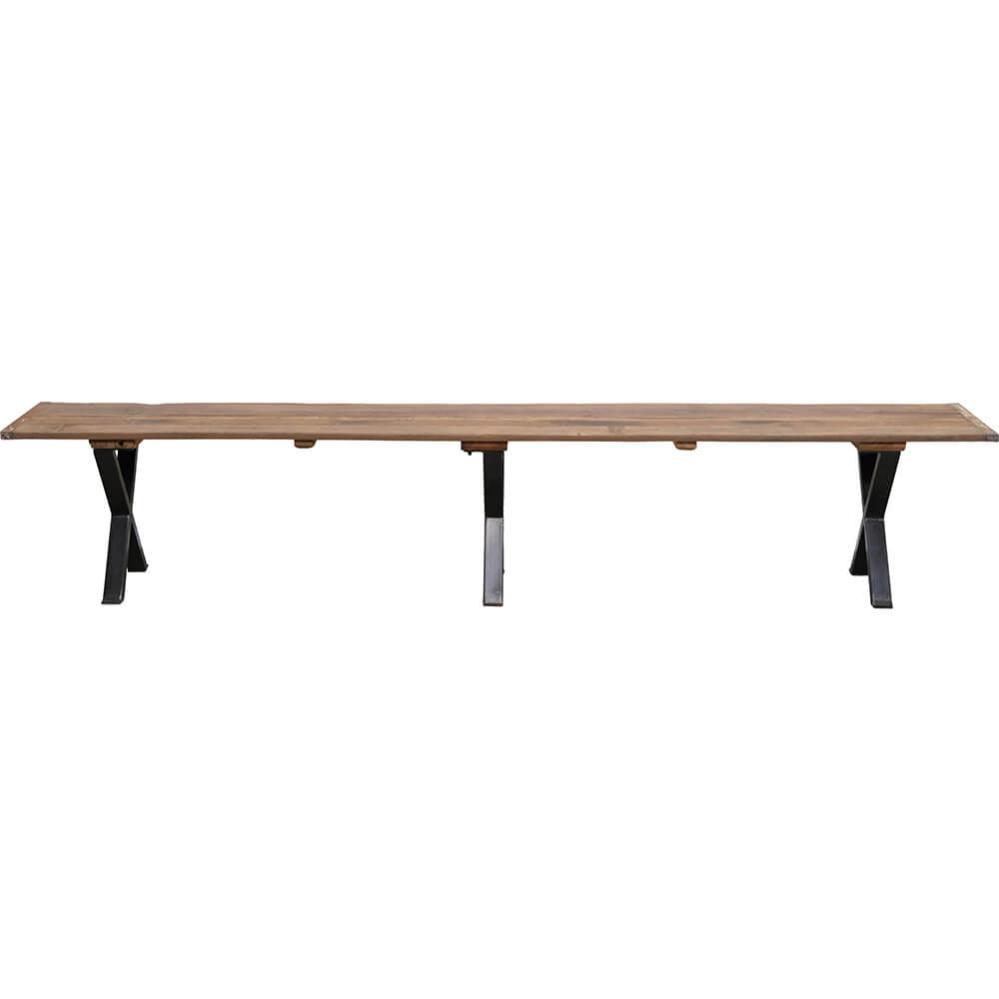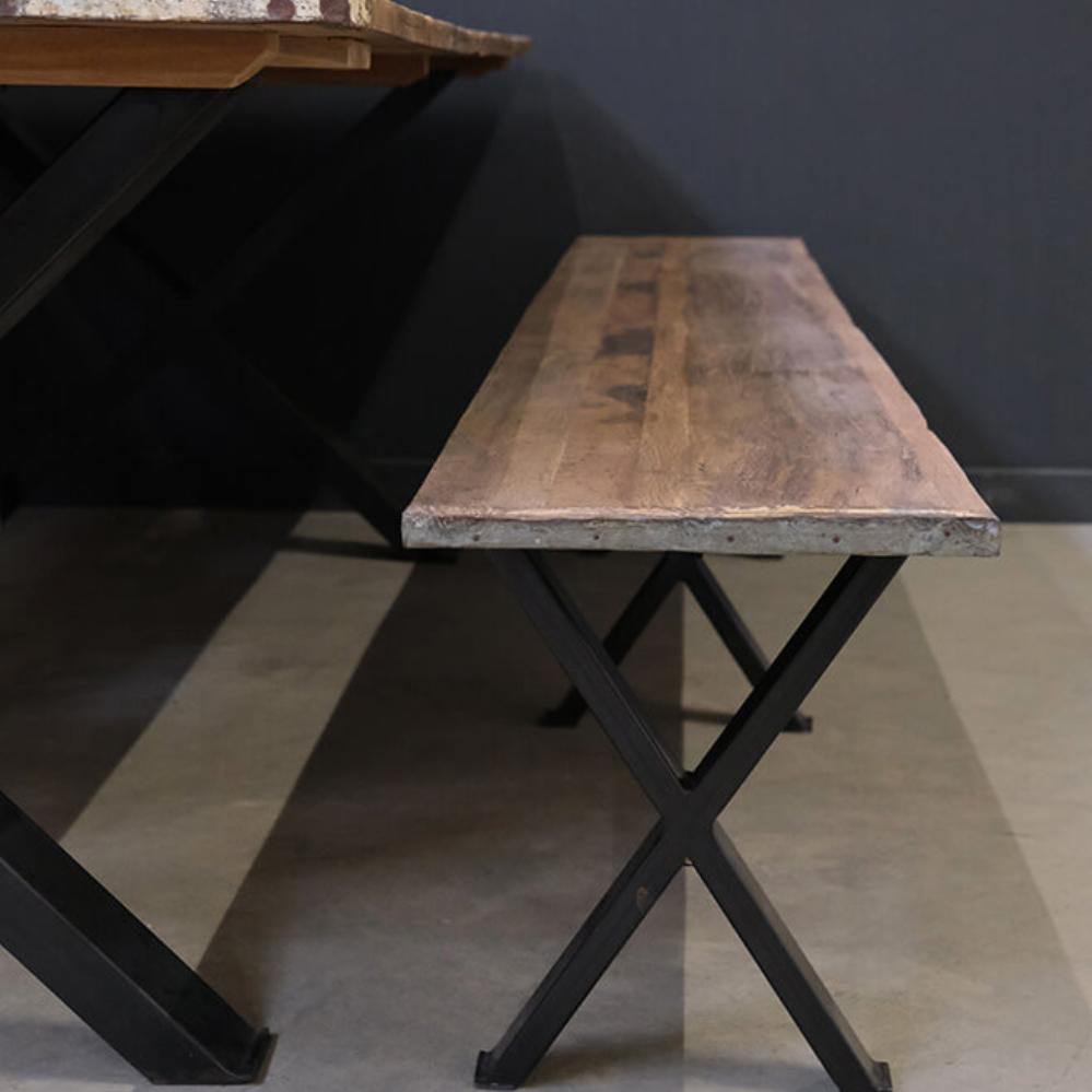 Long bench in reclaimed wood with raw iron edges and iron base. The bench pairs beautifully with the matching table (find it in the webshop under SG0334), but it's also super beautiful on its own. You can use it as seating or decorate it with vases, lamps, books, and cushions - only your imagination sets the limits. With its size and stunning design, the bench will create a rustic and cozy atmosphere. Find a matching table under item number: SG0334 Please note: The bench requires specialized transportation.