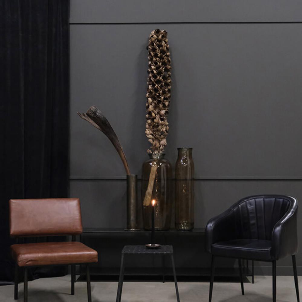 The Queens dining chair is the ultimate choice for those seeking a chair with both elegance and comfort. The padded seat cushion and backrest in luxurious buffalo leather provide a comfortable seating experience, while the robust iron frame adds an industrial elegance to any dining area. The armrests offer extra comfort, making this chair ideal for long dinners and cosy gatherings. With its timeless aesthetics, this chair will be a valuable addition to your dining area for many years to come.
