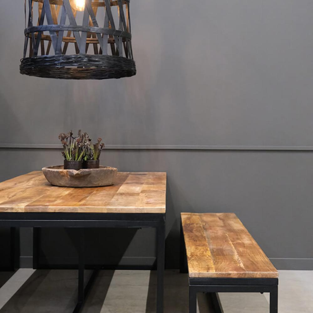 This raw bench in mango wood with a black-painted frame appears both simple and rustic. This bench is for those who appreciate solid craftsmanship and simple design, and who want a piece of furniture that can accompany them for many years. The bench can be used as it is, as a shoe bench in your hallway, or as a combined console table/bench in your living room or kitchen. You can also choose to use it as a bench for the matching dining table you find in the shop. Search for item number: M03067B.
